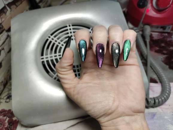 Особенность:Он изготовлен из здоровых, экологичных, чистых, не ядовитых, острых химических материалов.Он быстро сохнет с любым УФ светильник Том.Цвет сохранит блеск до 30 дней.Позволяют вам профессиональный или домашний дизайн ногтей.Горячие цвета на выбор, подходят на все случаи жизни.Профессиональный подарок для дизайна ногтей себе или своей девушке.Спецификация:Бренд: MtssiiТип изделия: гель для ногтейИнгредиент: УФ гель лакОбъем: 5 млКоличество: 1 бутылкаТип: Гель-лакОтмачивание: ДаОтверждение: УФ светодиодный ная лампаПреимущество: простота в обращенииЭффект: магнитныйШаг за шагом:1. Очистите ногти, затем обрежьте поверхность ногтя по мере обычный ноготь процесса искусства.2. Полностью встряхните Гель-лак, он может сделать Цвет гель-лака сбалансированным. (ВАЖНО)3. Сначала нанесите Базовое покрытие, которое может сделать Гель-лак стойким дольше, закрепите УФ-лампой светодиодный Ной лампой. (Необходимо)3. Нанесите слой геля черного цвета и отвердите его. (необходимо)4. Нанесите первый слой магнитного геля и вылечите его.5. Нанесите второй слой магнитного геля, держите магнит близко к поверхности ногтя в течение 5-10 С.6. Нанесите верхнее покрытие и вылечите его.Как снять УФ-гель для ногтей:• Замочите ногти в стеклянной чаше, наполненной небольшим количеством чистого ацетона, или Заверните каждый ноготь в ватный диск, пропитанный чистым ацетоном, примерно на 5-10 минут.• Изделие начнет становиться мягким, и вы можете аккуратно отправить его или сдвинуть, используя небольшую деревянную палочку.