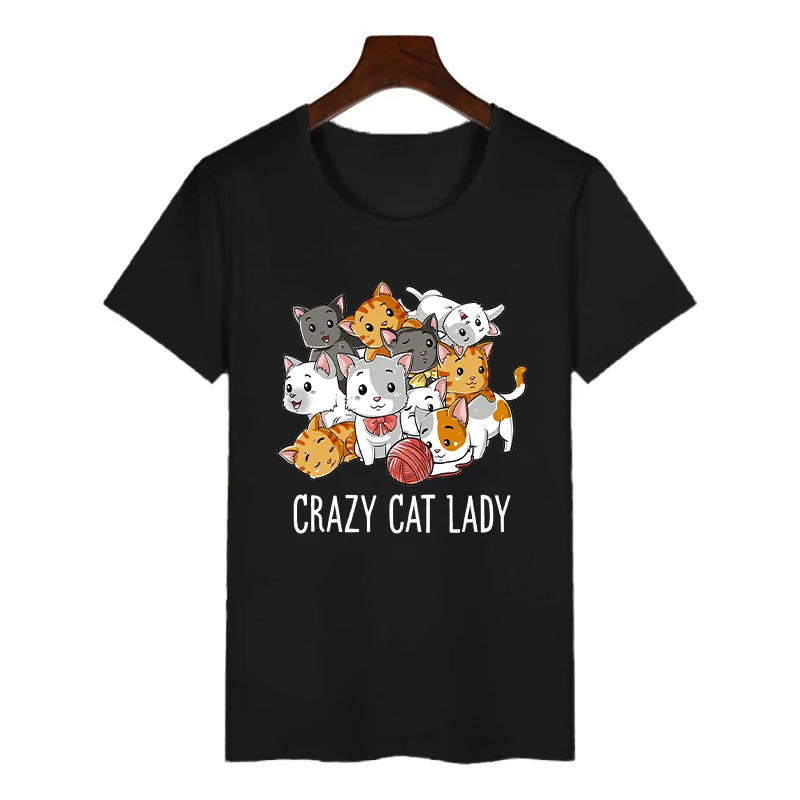 Футболка женская с котом Crazy Cat Lady, милый летний топ для влюбленных, с забавным котом, котенком, мемом, подарок, для любимых, на лето