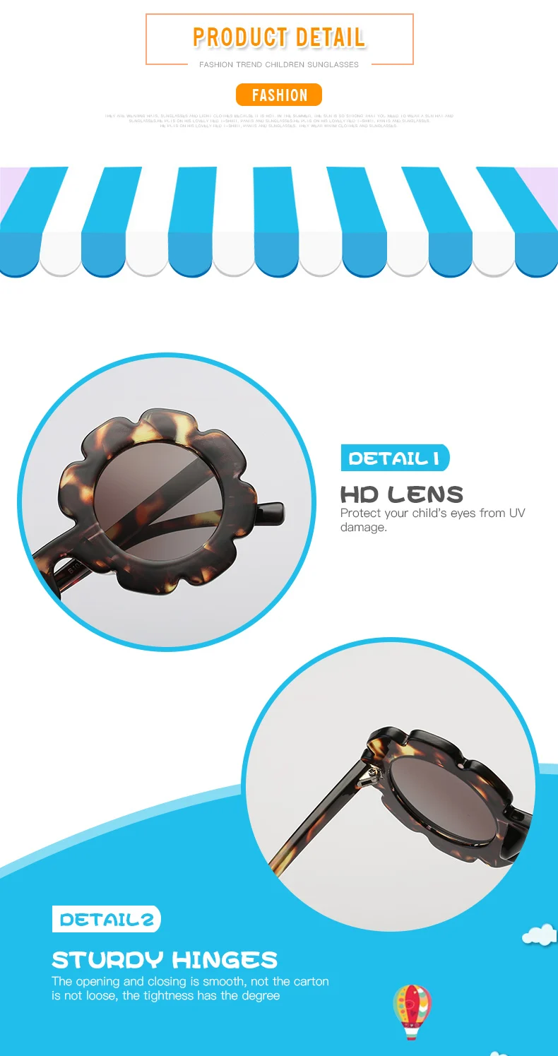 Солнцезащитные очки для мальчиков и девочек UV400, винтажные, с круглыми цветами