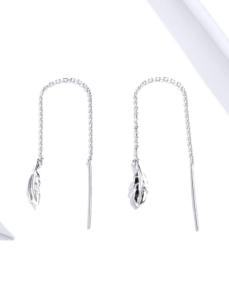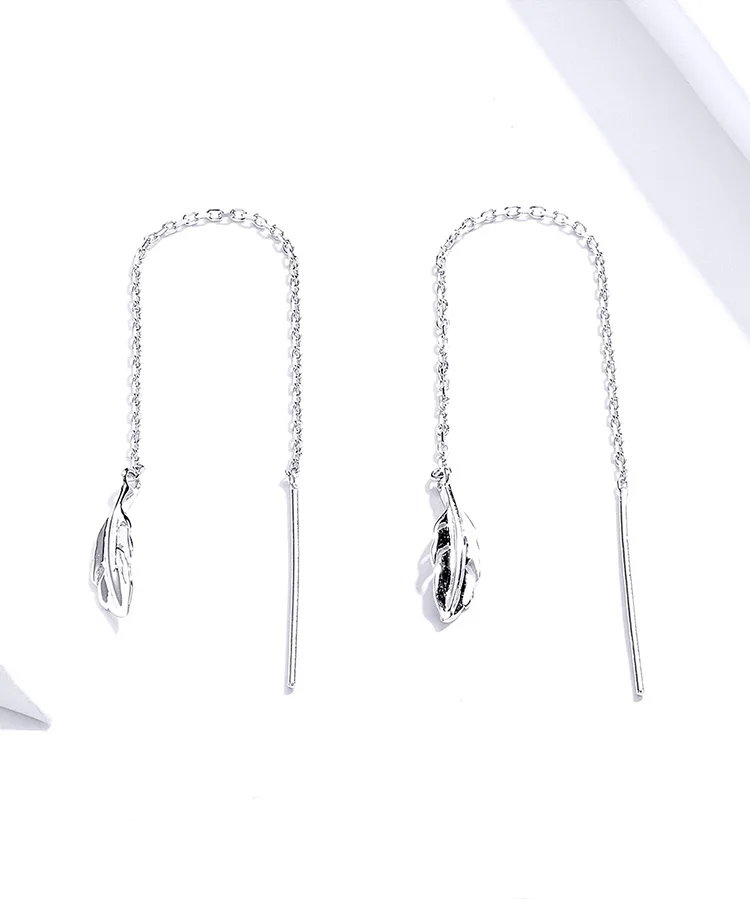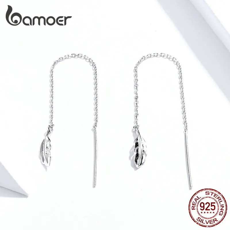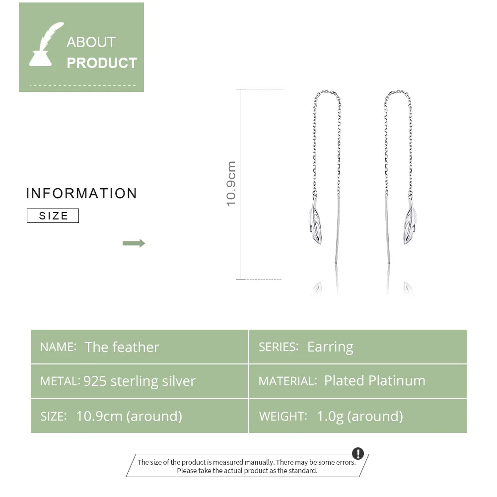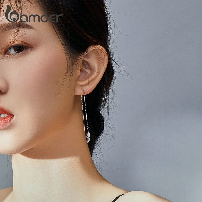 Женские Висячие серьги с перьями bamoer, из стерлингового серебра 925 пробы, на длинной цепочке, SCE786