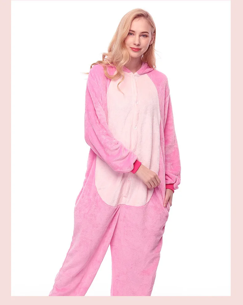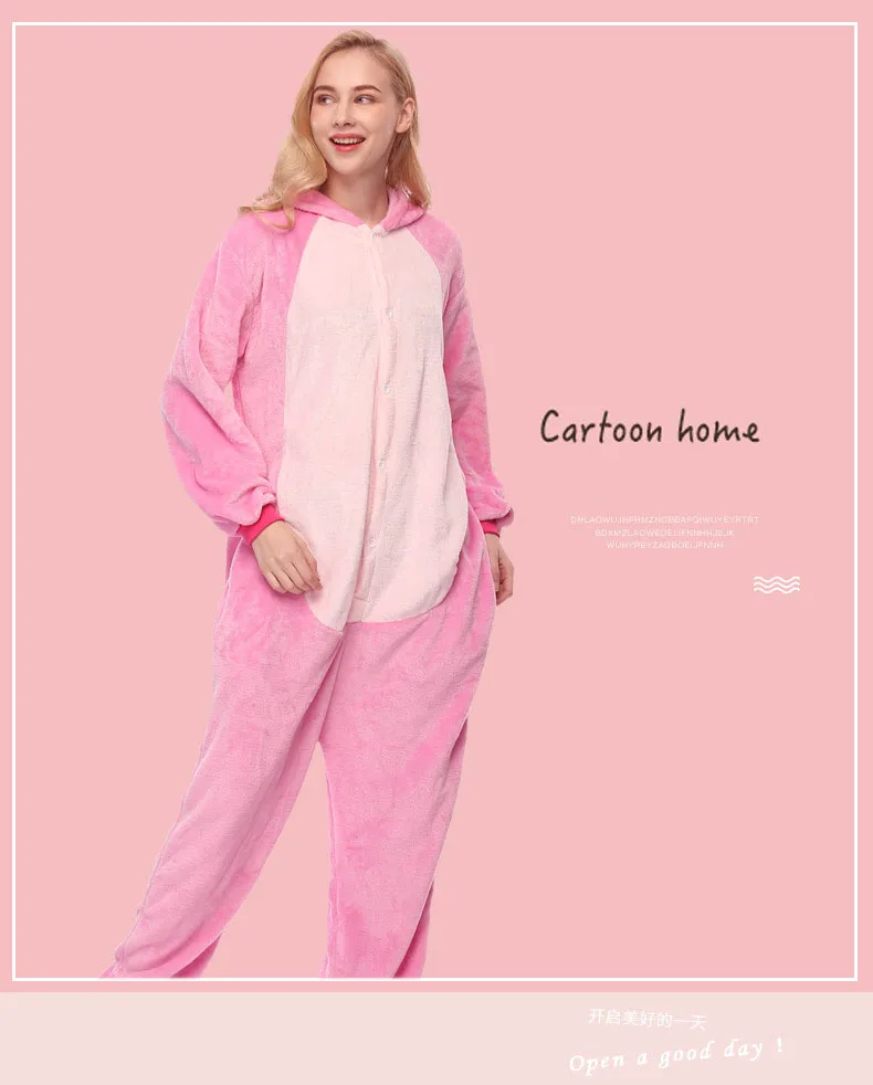 Комбинезон-кигуруми в виде животных, домашняя одежда, женская розовая пижама с мультяшным рисунком для взрослых, зимняя одежда для сна, комбинезон, Пижамный костюм, женские комбинезоны
