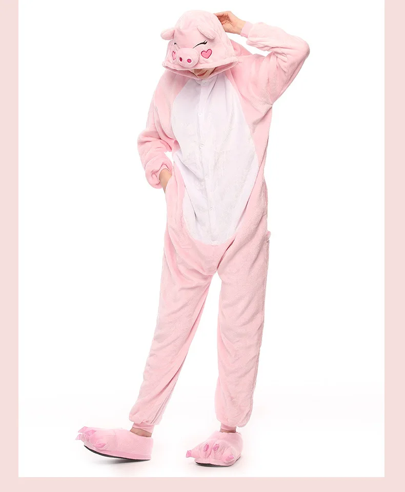 Пижама кигурумис с животными, Пижама для взрослых, мультяшная розовая свинка, женская пижама, зимняя Домашняя одежда, комбинезон, Пижамный костюм, женский комбинезон