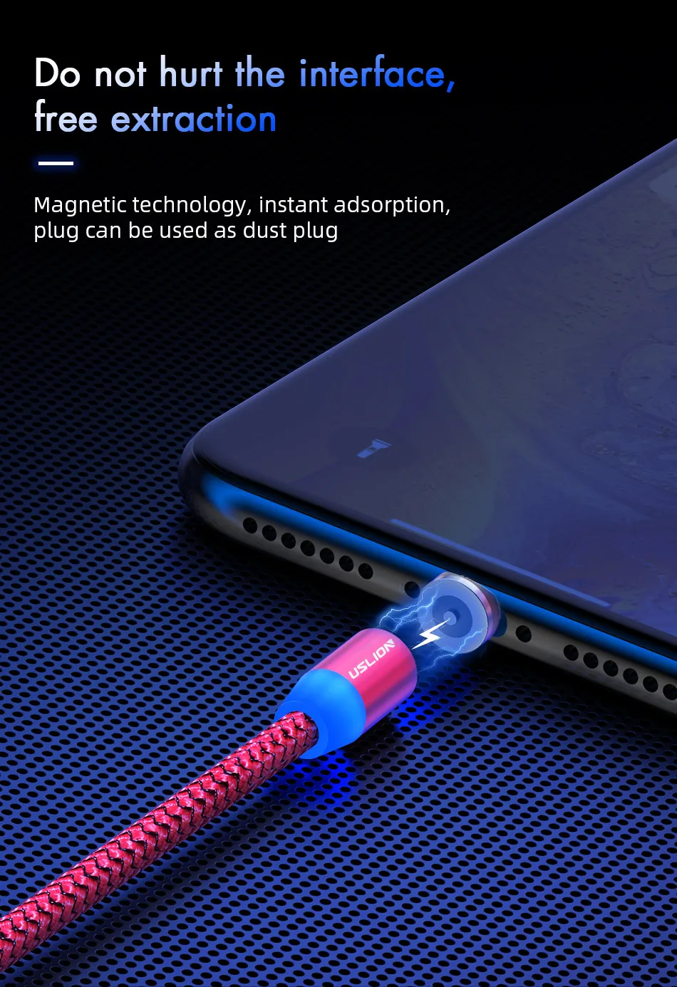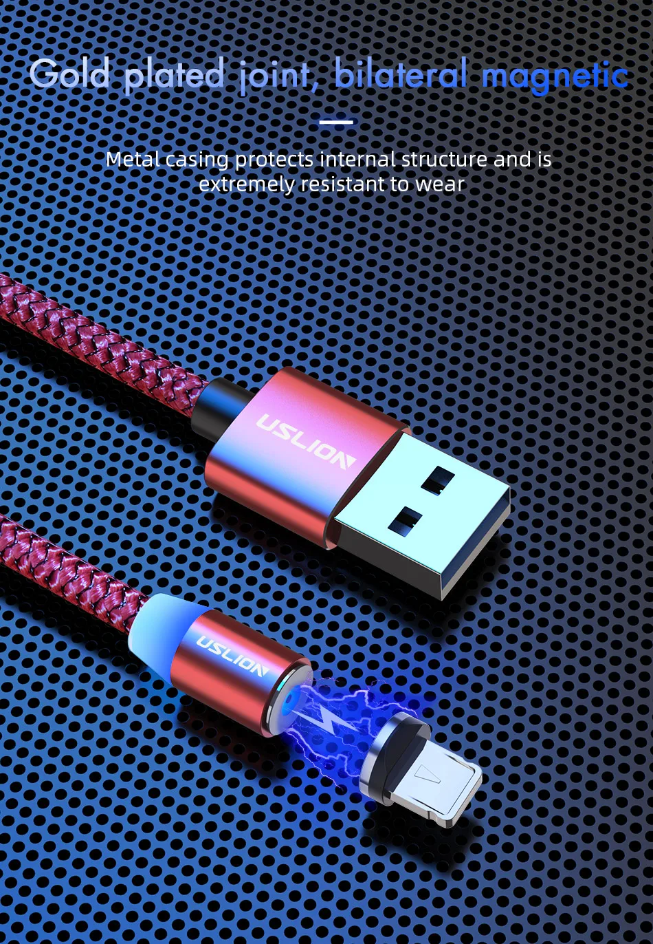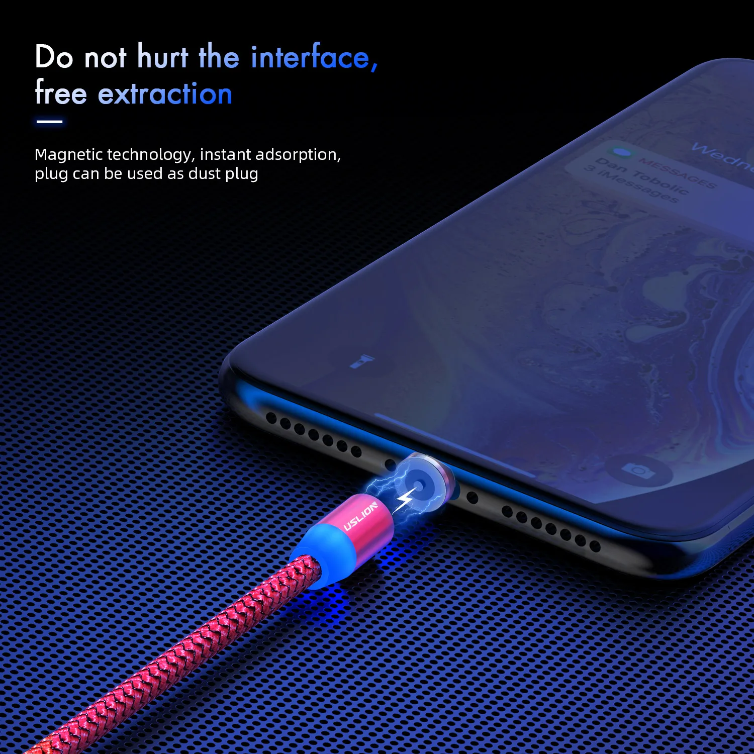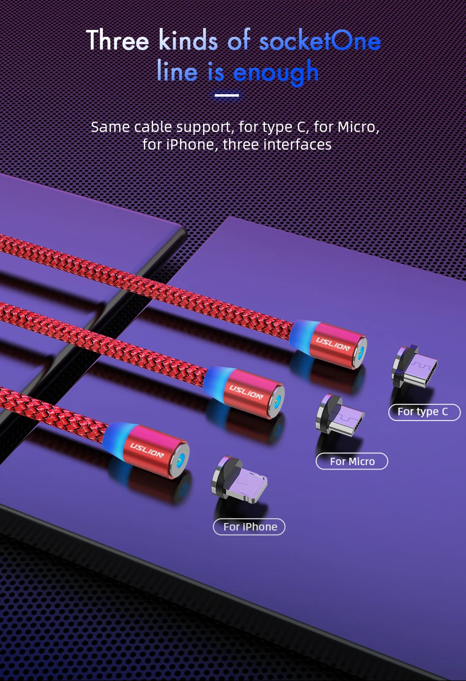 Usb-кабель USLION для быстрой зарядки Магнитный usb-кабель для iPhone Type C зарядный кабель для Xiaomi Note 10 Micro USB Магнитный кабель