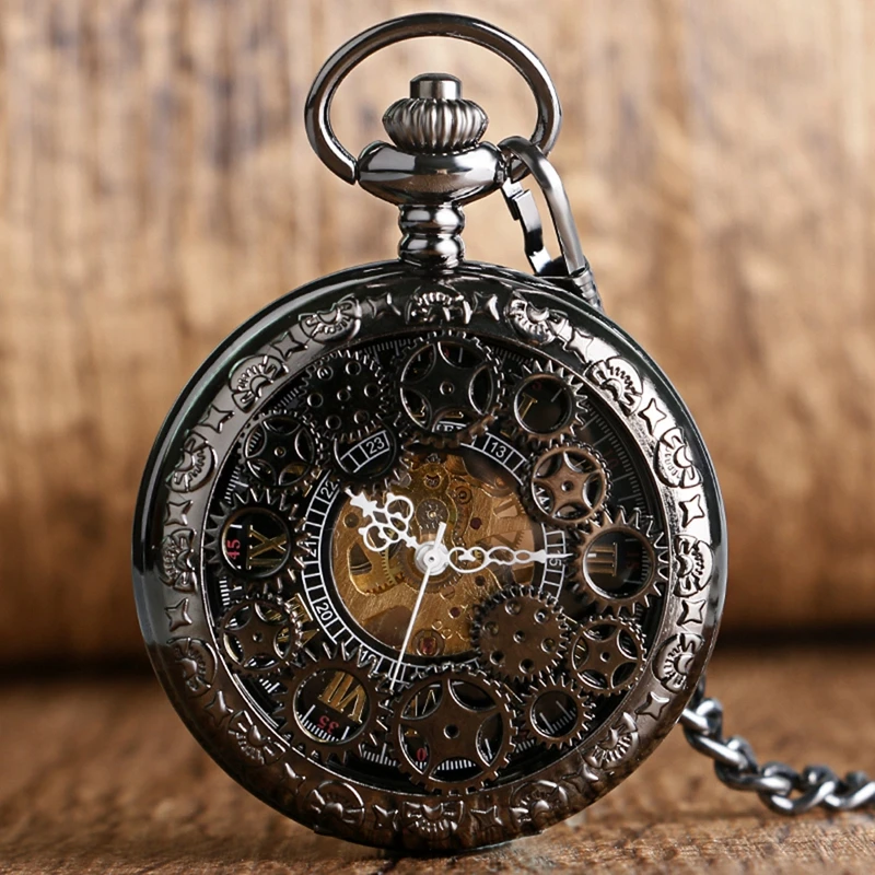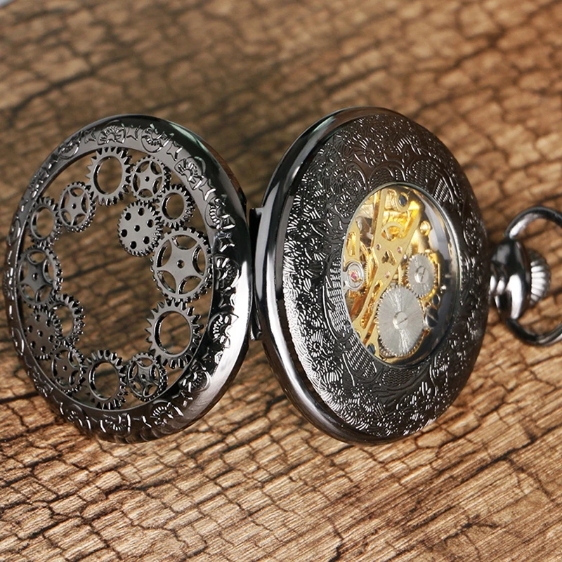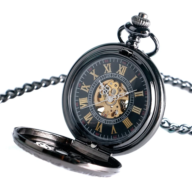 Модные ручные механические черные карманные часы ретро кулон часы цепочка-ожерелье принадлежность для часов relogio Montres zakhorlog