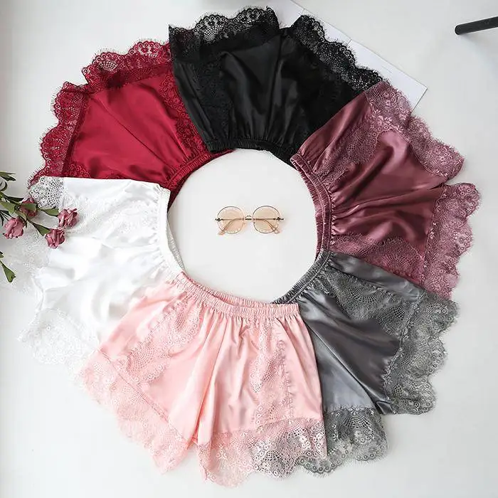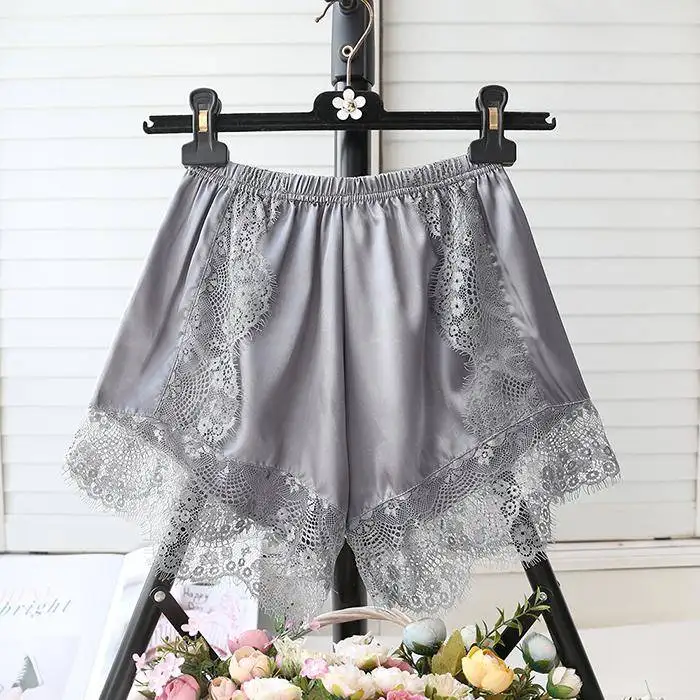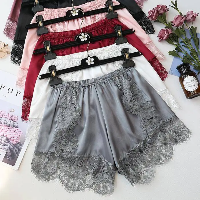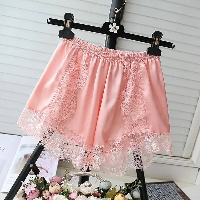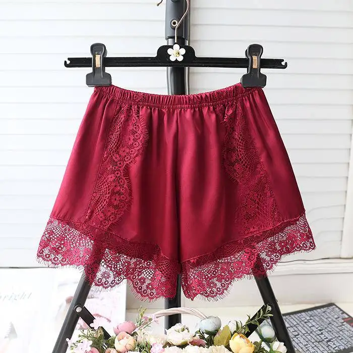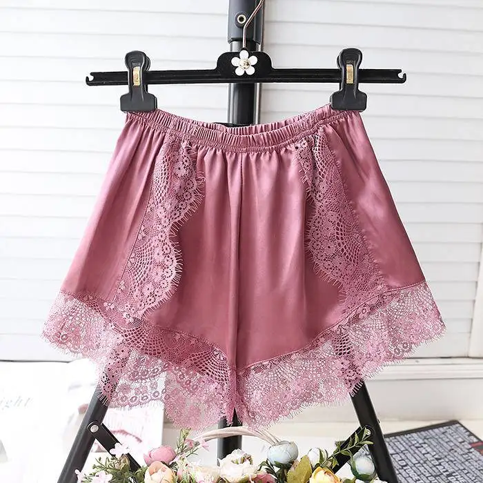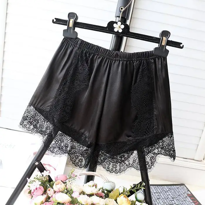 Размера плюс шелковые шорты для отдыха, пижамные штаны, женские пикантные Шорты для сна, атласные штаны для женщин, кружевная одежда для сна для девушек 40-80 кг