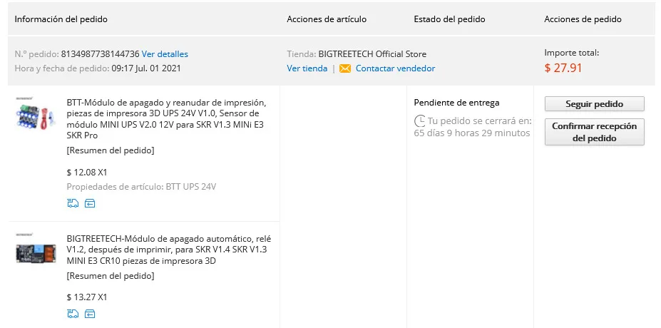 Страна: RU Size: BTT UPS 24V Доставка: Standard Shipping 27.07.2021
