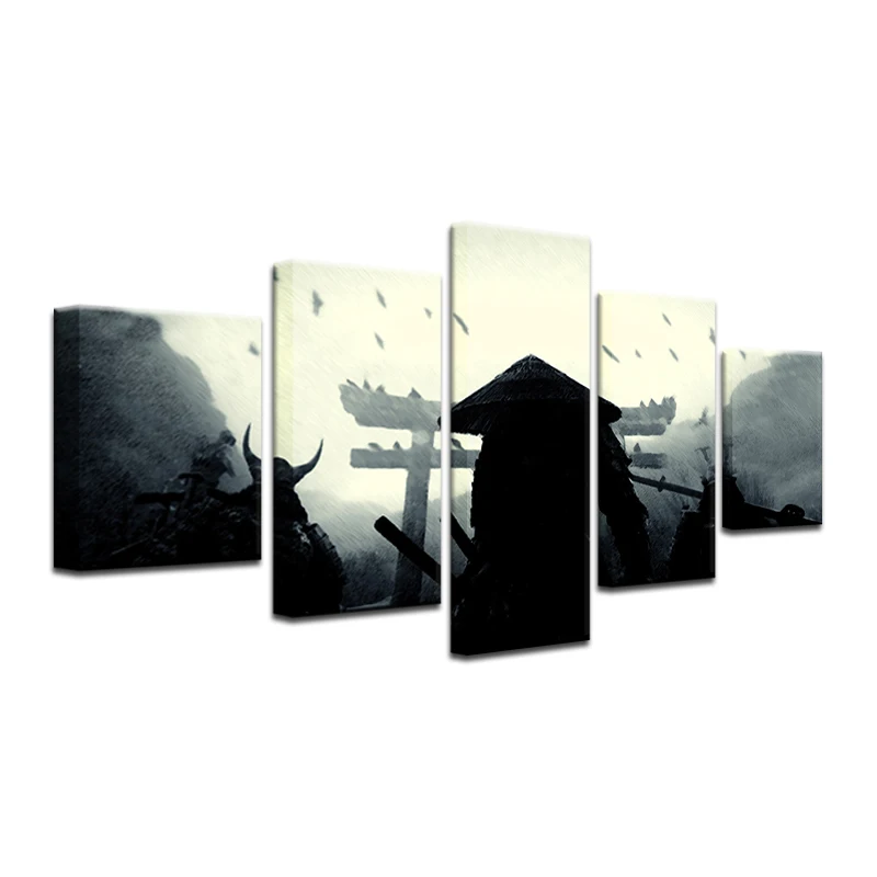 Модульные популярные картины, Современное украшение Куадрос, фотография, 5 панелей, картина самурая, холст, художественная рама, стена для гостиной
