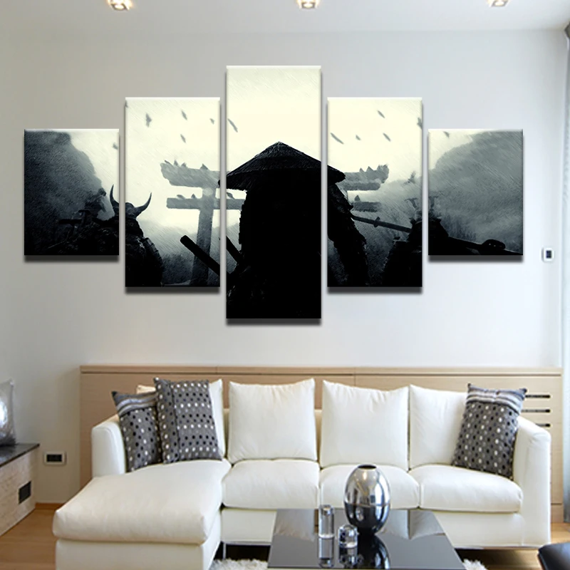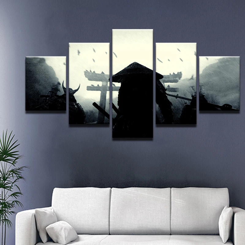 Модульные популярные картины, Современное украшение Куадрос, 5 панелей, картина с самураем, Картина на холсте, настенная рамка для гостиной