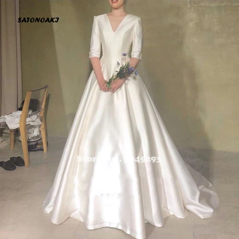 Атласное свадебное платье в стиле бохо, с длинным рукавом, высоким ...