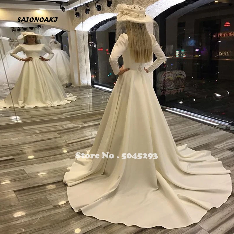 Женское свадебное платье со шлейфом, простое винтажное платье цвета слоновой кости с длинным рукавом, трапециевидной формы, лето 2022