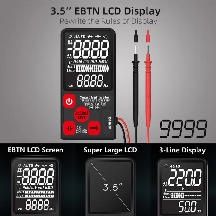 Мультиметр BSIDE EBTN, ЖК-дисплей 3,5 дюйма, 3 линии, 9999 отсчетов...