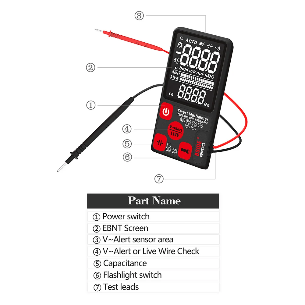 Цифровой мультиметр ADMS9CL MJJ88, смарт-мультиметр с большим дисплеем, сопротивление напряжению