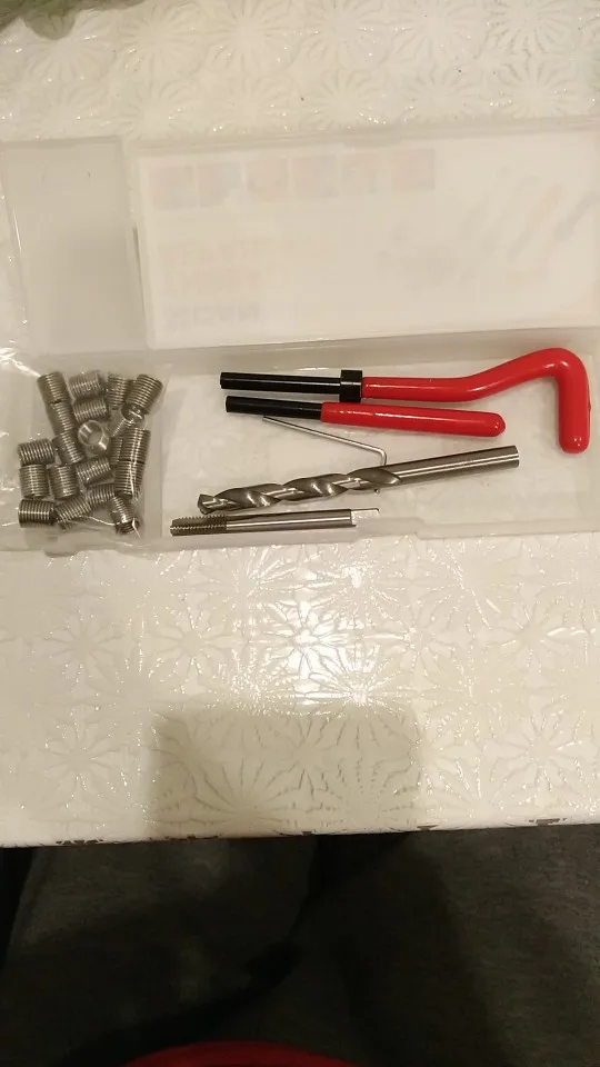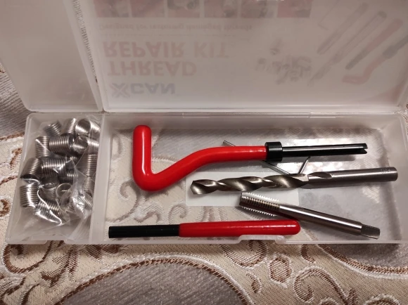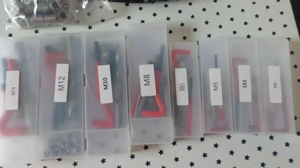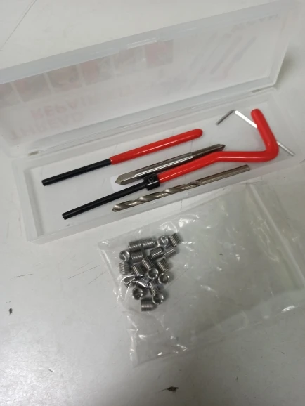 доставка быстрая. в деле не проверял, но выглядит достойно. Может кому-то пригодится: размер указан для резьбы которую надо восстановить, т.е если у вас сорвана резьба м6х1, то такой размер и надо заказывать (придет сверло, метчик под больший размер и вставка с внутренним диаметром м6).