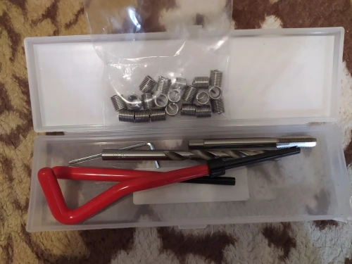 Заказал 12.10.2020 Прибыл в Калугу 15.01.2021. Цена на момент заказа 555,02р. Честно сказать расстроил меня этот набор, а конкретно расстроили сами пружинки. Потому как шаг резьбы не тот что надо мне для ремонта крепления клапанной крышки на Шевроле Лачетти. В обычном состоянии шаг резьбы у этой пружины наверное 0.75 при диаметре М8. Когда закручиваю в неё болт М6 шаг 1.0, то пружина раздвигается и получается М8 шаг 1.0. А мне нужно М8 шаг 1.25. И метчик тоже не правильный. Маркировка на метчике указывает, что это М6 шаг 1.0, но по факту, это М8 шаг 1.0. Да он подойдёт для этой пружинки при условии, что болт вкрученый в эту пружинку будет с шагом 1.0. Вывод: Эти пружинки повторяют тот шаг болта который в них вкручивается. На фото показаны сравнения. БУДЬТЕ ВНИМАТЕЛЬНЫ !!! И читайте описание. Продавец хороший, но я с ним не общался. А наверняка можно было выяснить эти детали. Всем удачи и добра!
