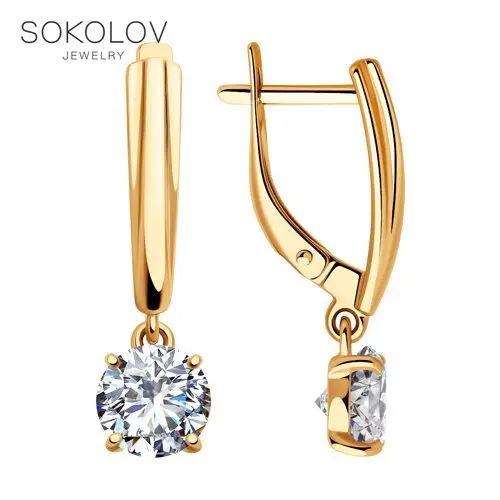 Серьги SOKOLOV из золочёного серебра с фианитами, Серебро, 925, Женские, Серьги 2022 тренд, Оригинальная продукция