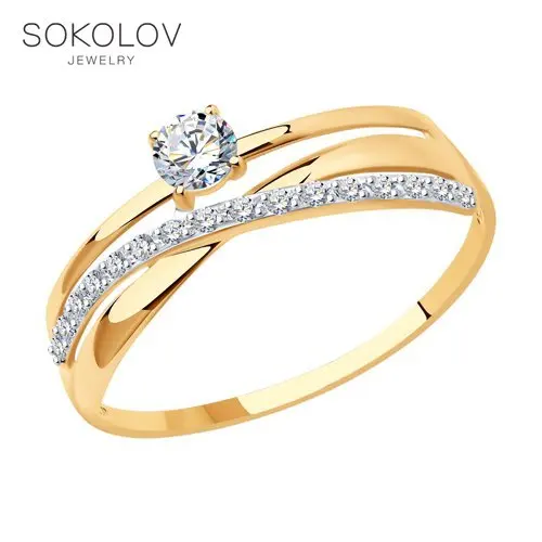 Кольцо SOKOLOV из золота с фианитами, Золото, 585, Женское, Оригинальная продукция