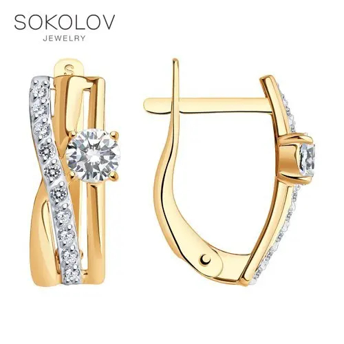 Серьги SOKOLOV из золота с фианитами, Золото, 585, Женские, Серьги 2022 тренд, Оригинальная продукция