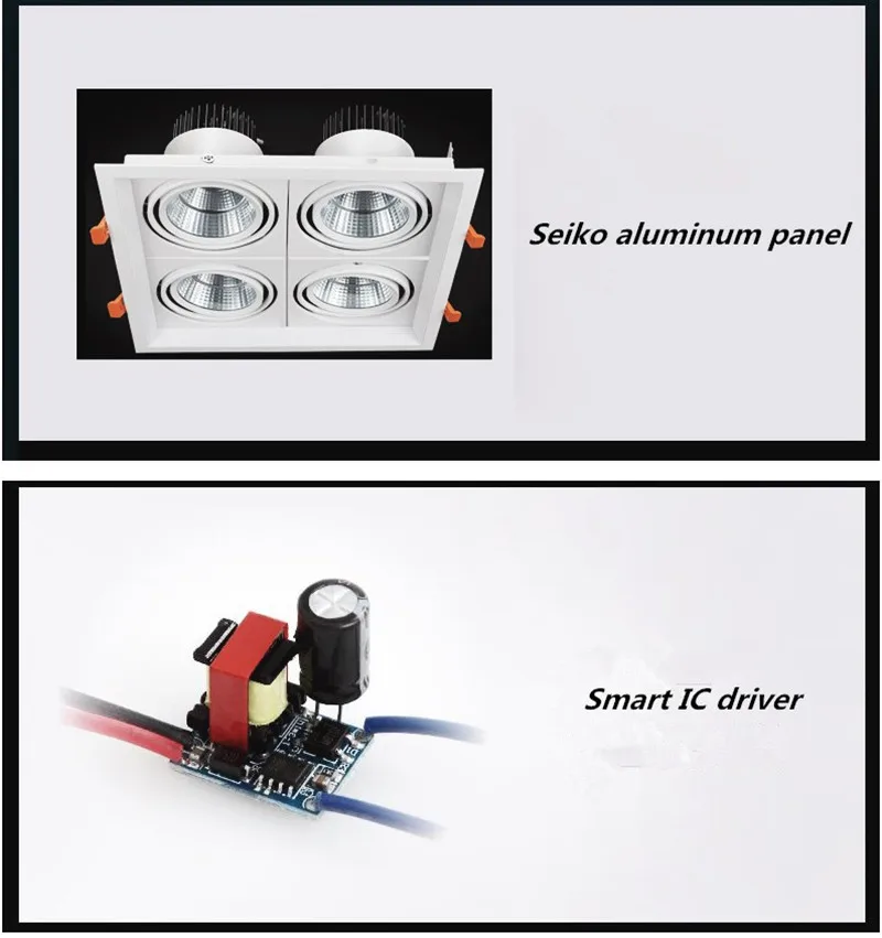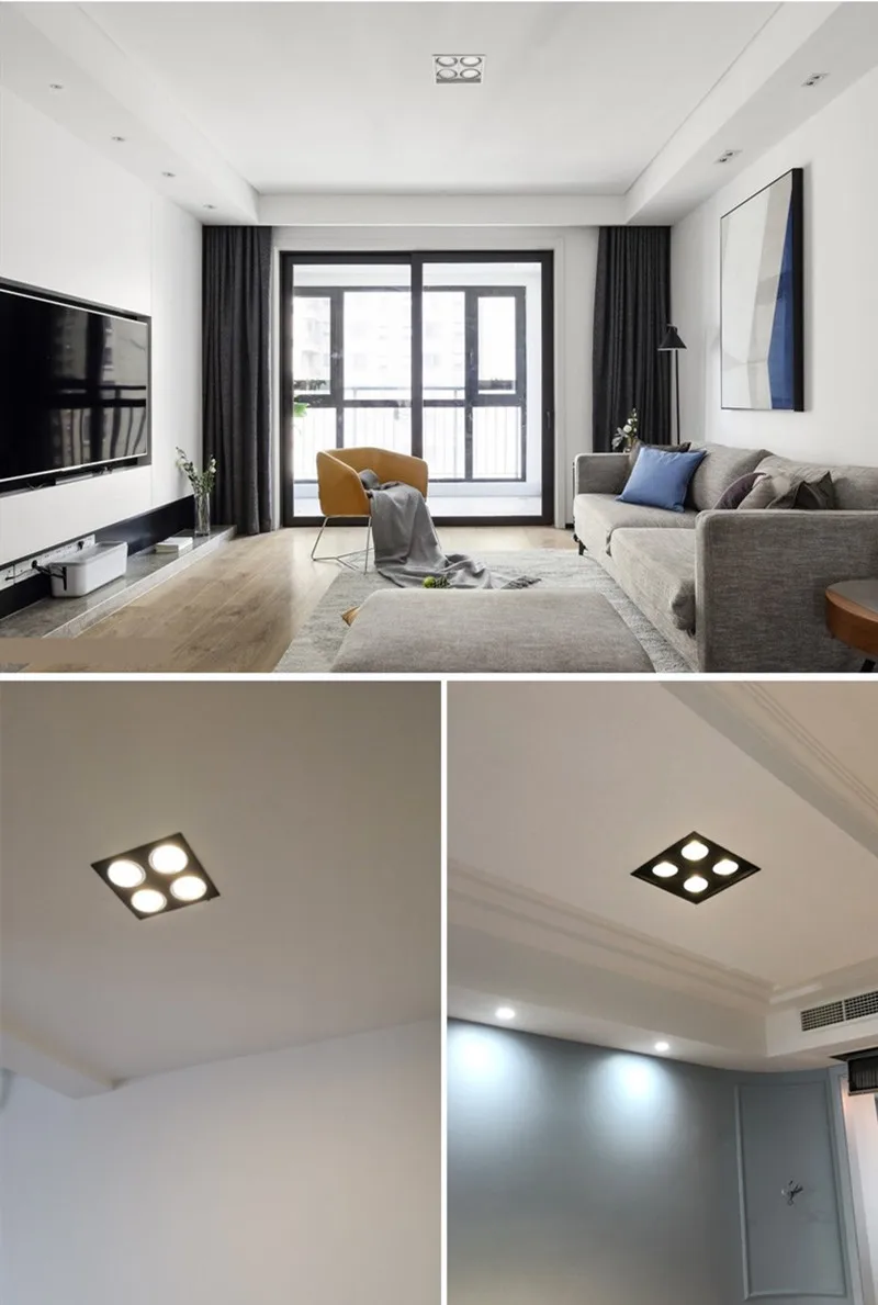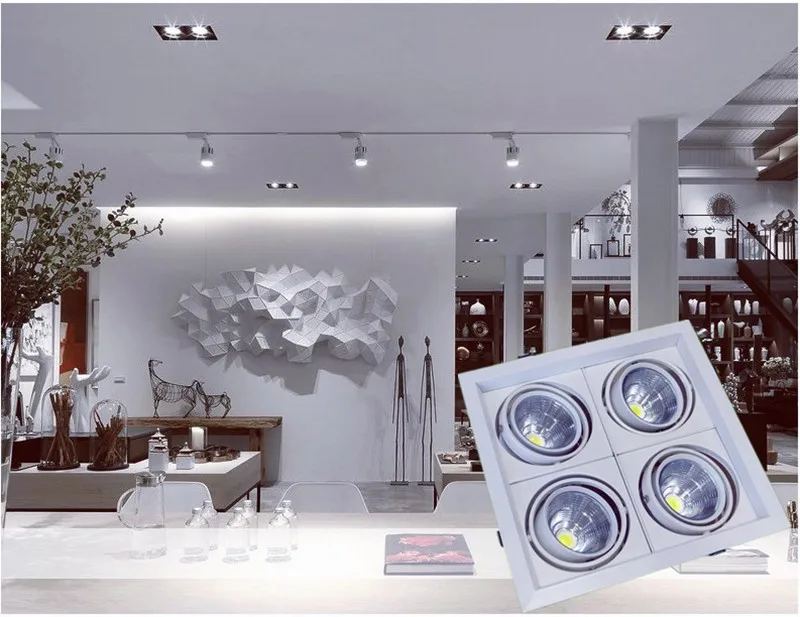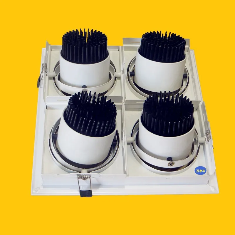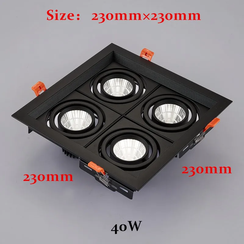 Встраиваемые антибликовые светодиодные потолочные светильники с 4 головками и регулируемой яркостью, 40 Вт, Epistar, чип COB, точечные потолочные светильники 85 265 В переменного тока, фоновая лампа + светодиодный привод
