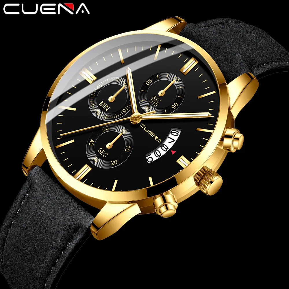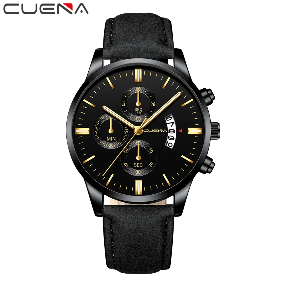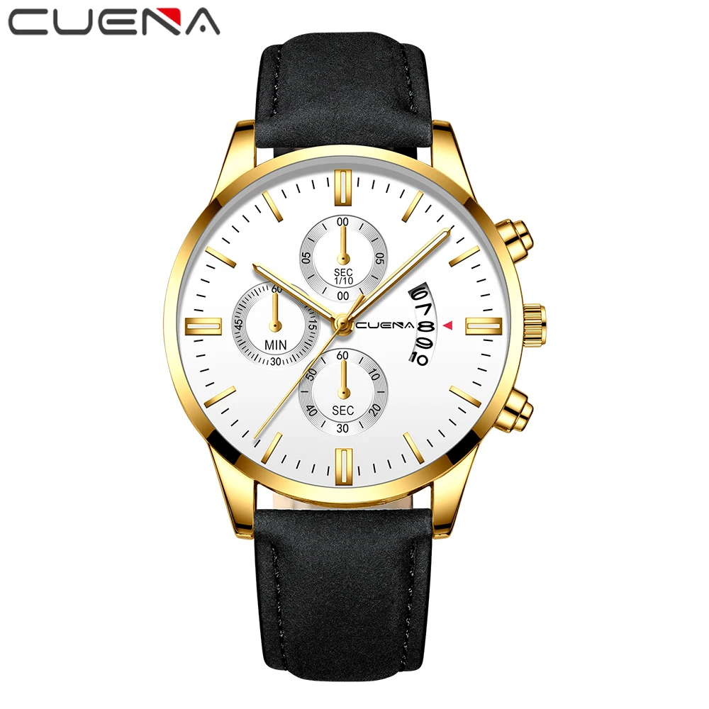 Часы наручные CUENA Мужские кварцевые, роскошные Брендовые спортивные повседневные водонепроницаемые в стиле милитари, с кожаным ремешком