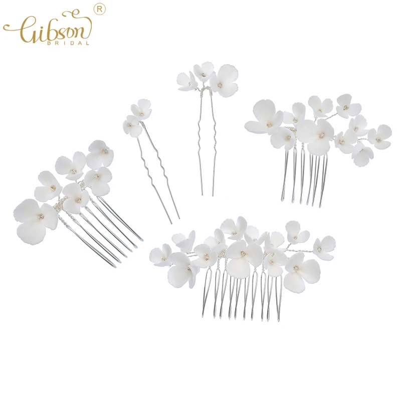 Набор заколок для волос с керамическими цветами ручной работы, свадебные аксессуары для волос невесты