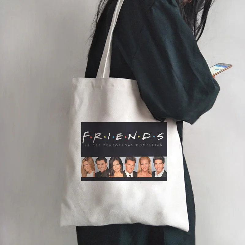 Сумка на одно плечо Friends TV Show, сумка для покупок с персонажем из мультфильма Харадзюку, повседневная женская сумка, кошелек, большая сумка, уличная сумка через плечо