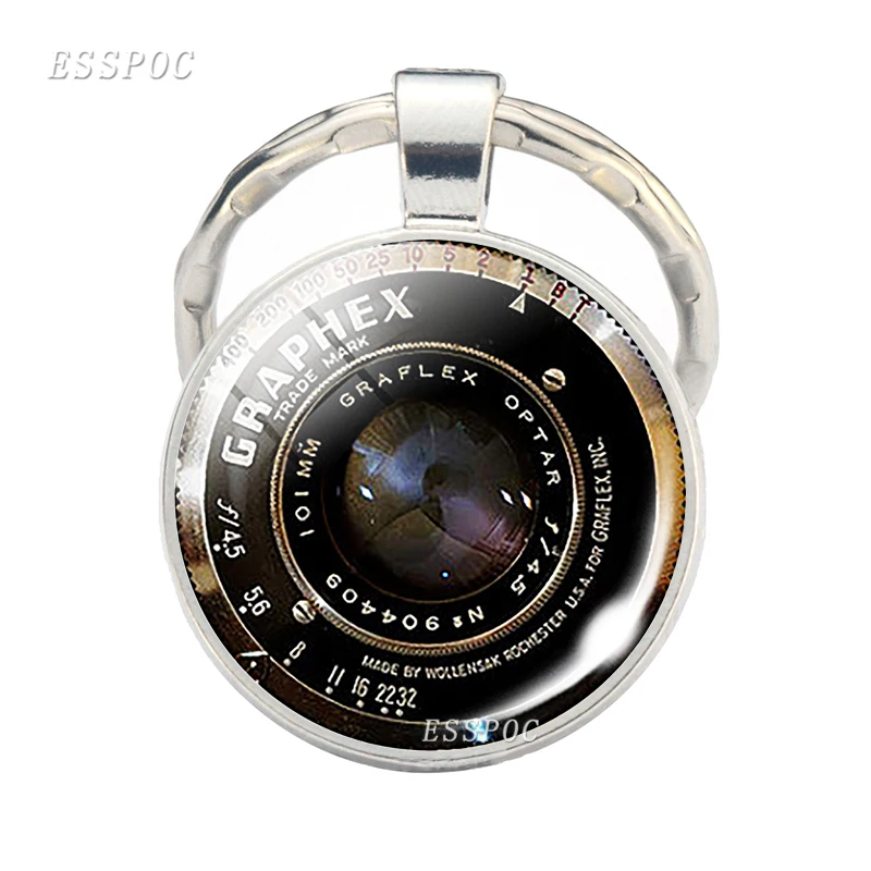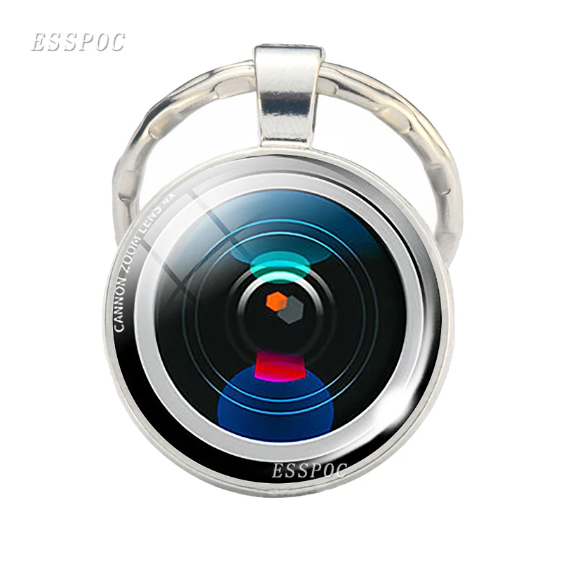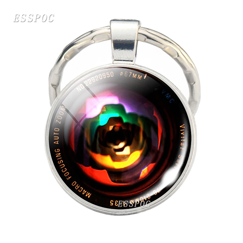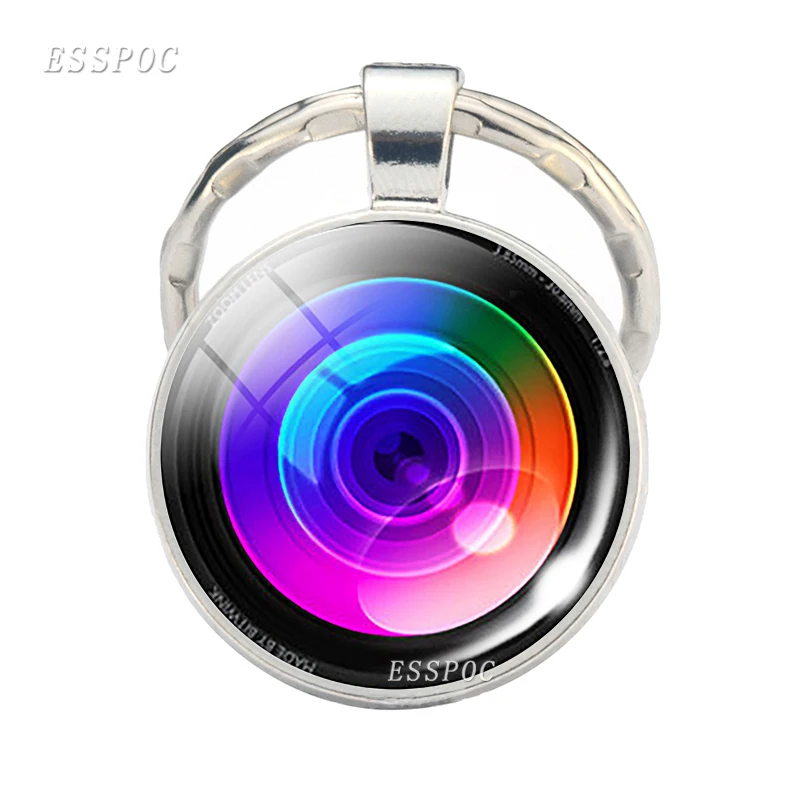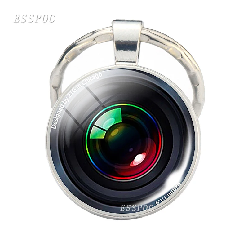 Новый модный стеклянный брелок для ключей с кабошоном с рисунком объектива камеры