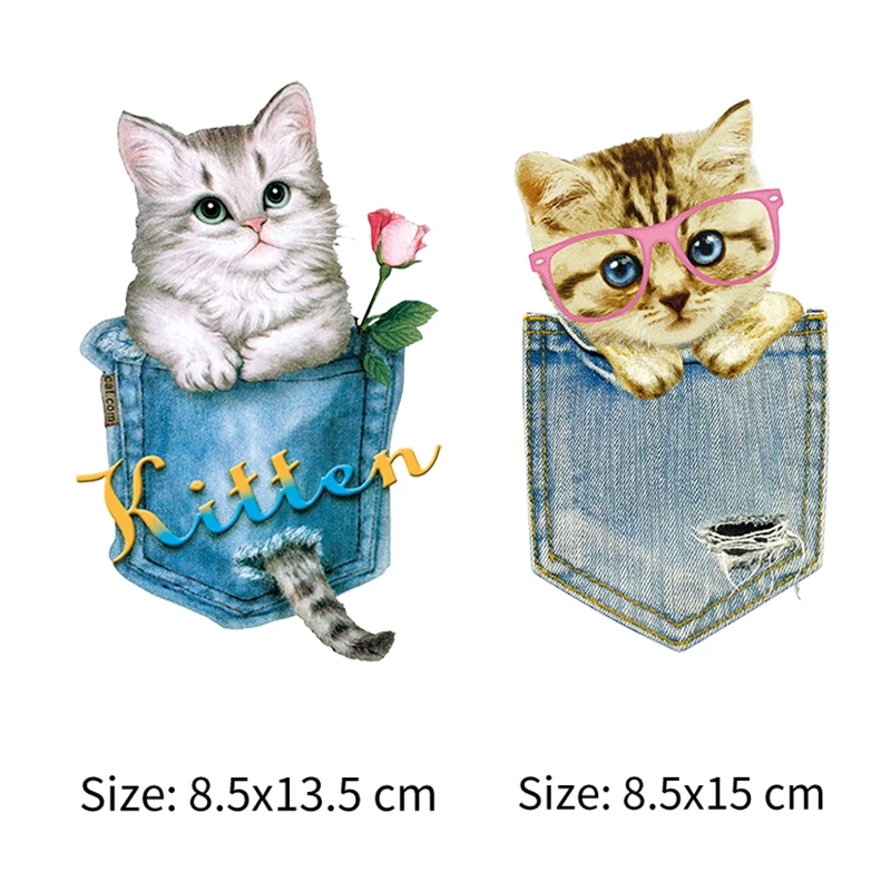 Карманные Кошки патчи Набор утюжок на переноске для детей Одежда для девочек Diy моющиеся парчи легко использовать теплопередачи виниловые наклейки