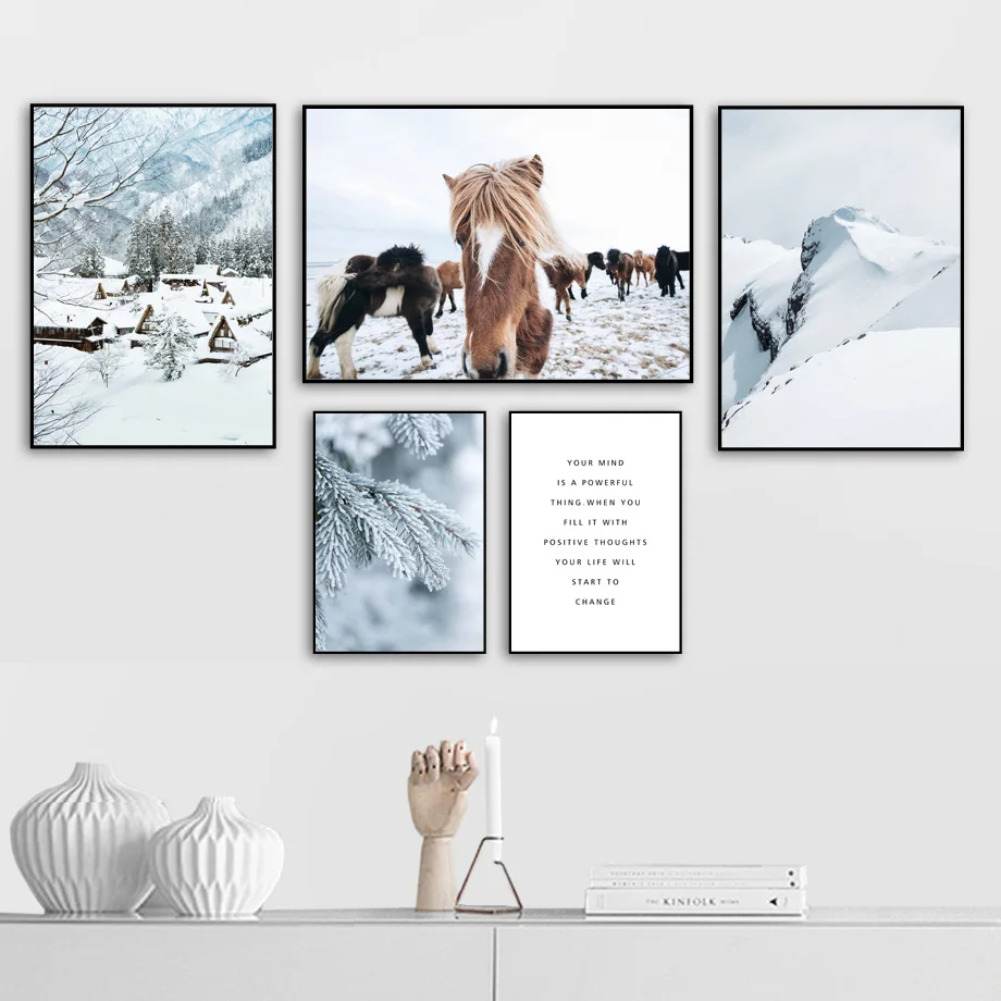 Альпы ледяная Гора смог сосна лес лошадь настенная Картина на холсте скандинавские постеры и принты настенные картины для декора гостиной