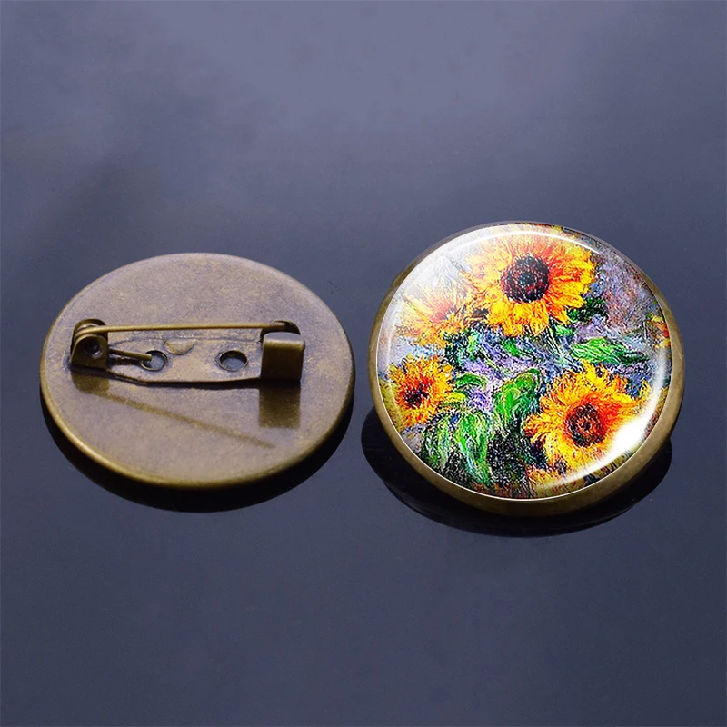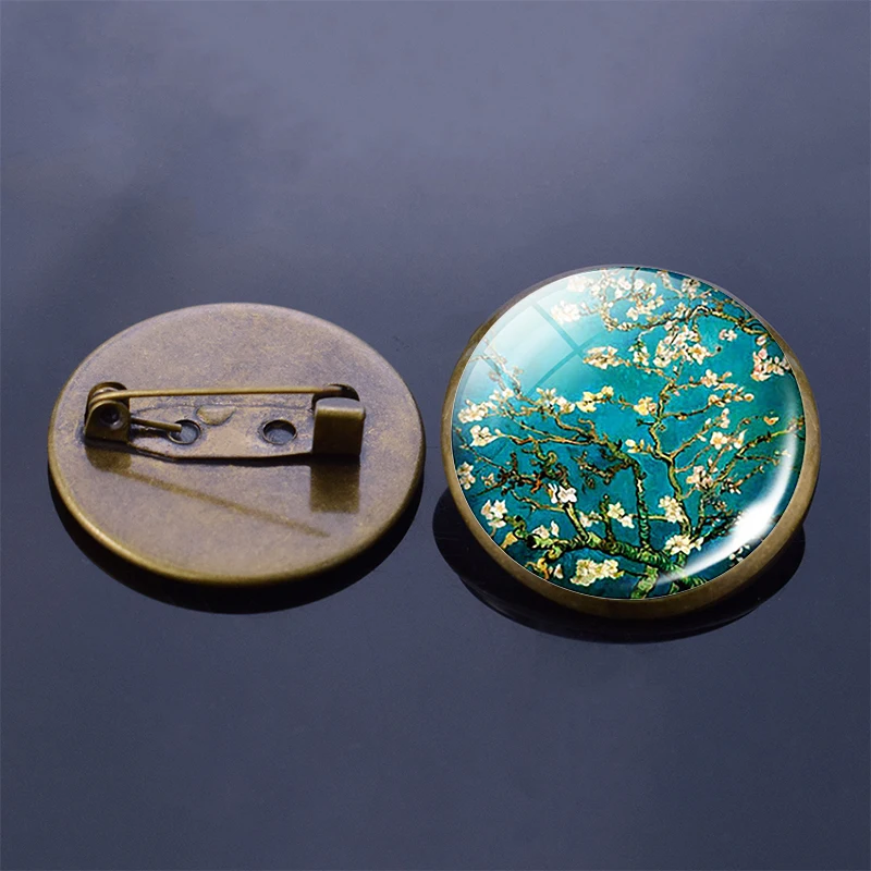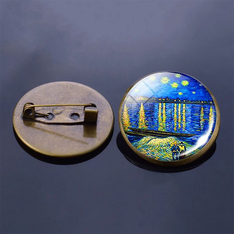 Винтажная художественная брошь Ван Гога в стиле звездной ночи, ручная работа, картина маслом, стекло, кабошон, бронзовые броши, булавка для мужчин и женщин, рождественский подарок