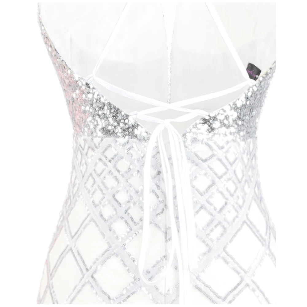 Ремешок на бретельках с открытой спиной Геометрический узор с блестками и фатиновой юбкой Подкладка и молния сзади. Шнуровка на спине. Костюм для вечеринки, выпускного вечера, свадьбы, вечерние и так далее