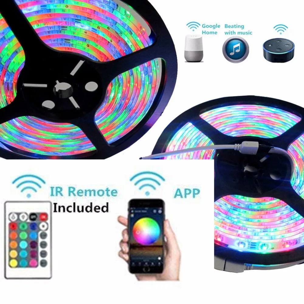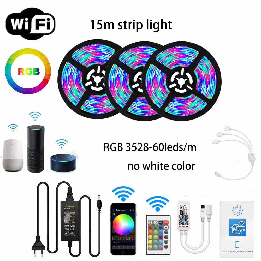 Водонепроницаемый светодиодный светильник RGB 2835, 5 м, 10 м, 20 м, 3528, Wi-Fi, ИК-пульт дистанционного управления, теплый белый, 3528, лента, адаптер для лампы, полный комплект