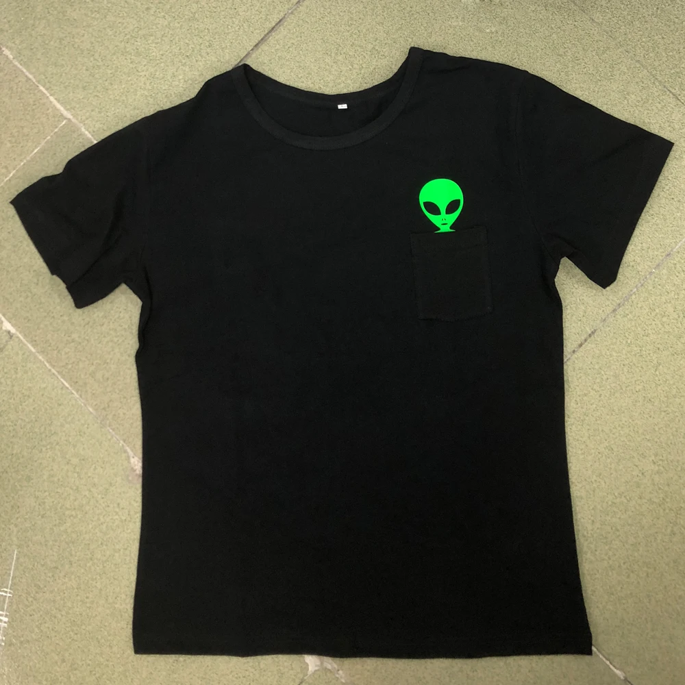 Футболка женская с карманом Инопланетянина на средний палец, смешная хипстерская футболка 90-х с графическим принтом, топ в стиле унисекс с коротким рукавом, черная, на лето