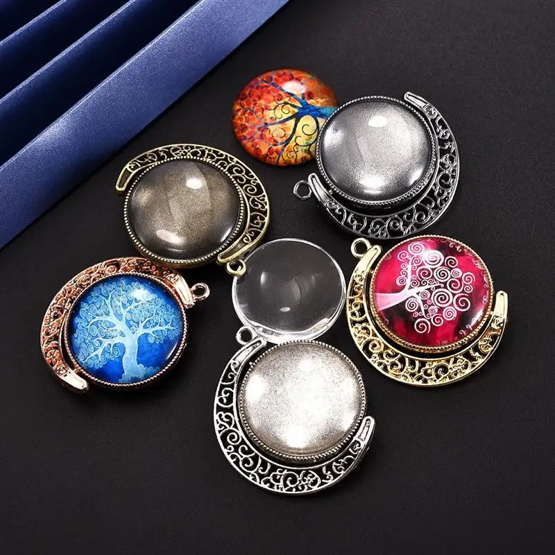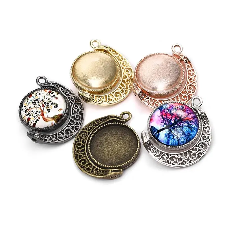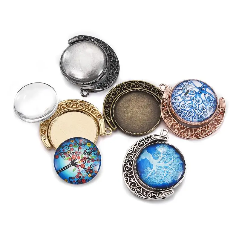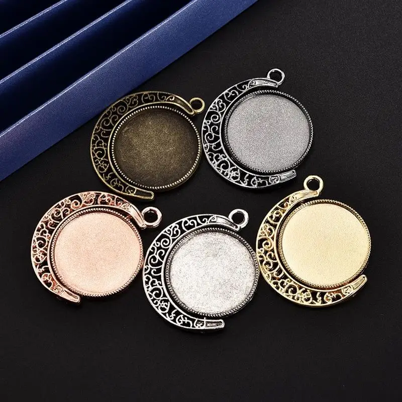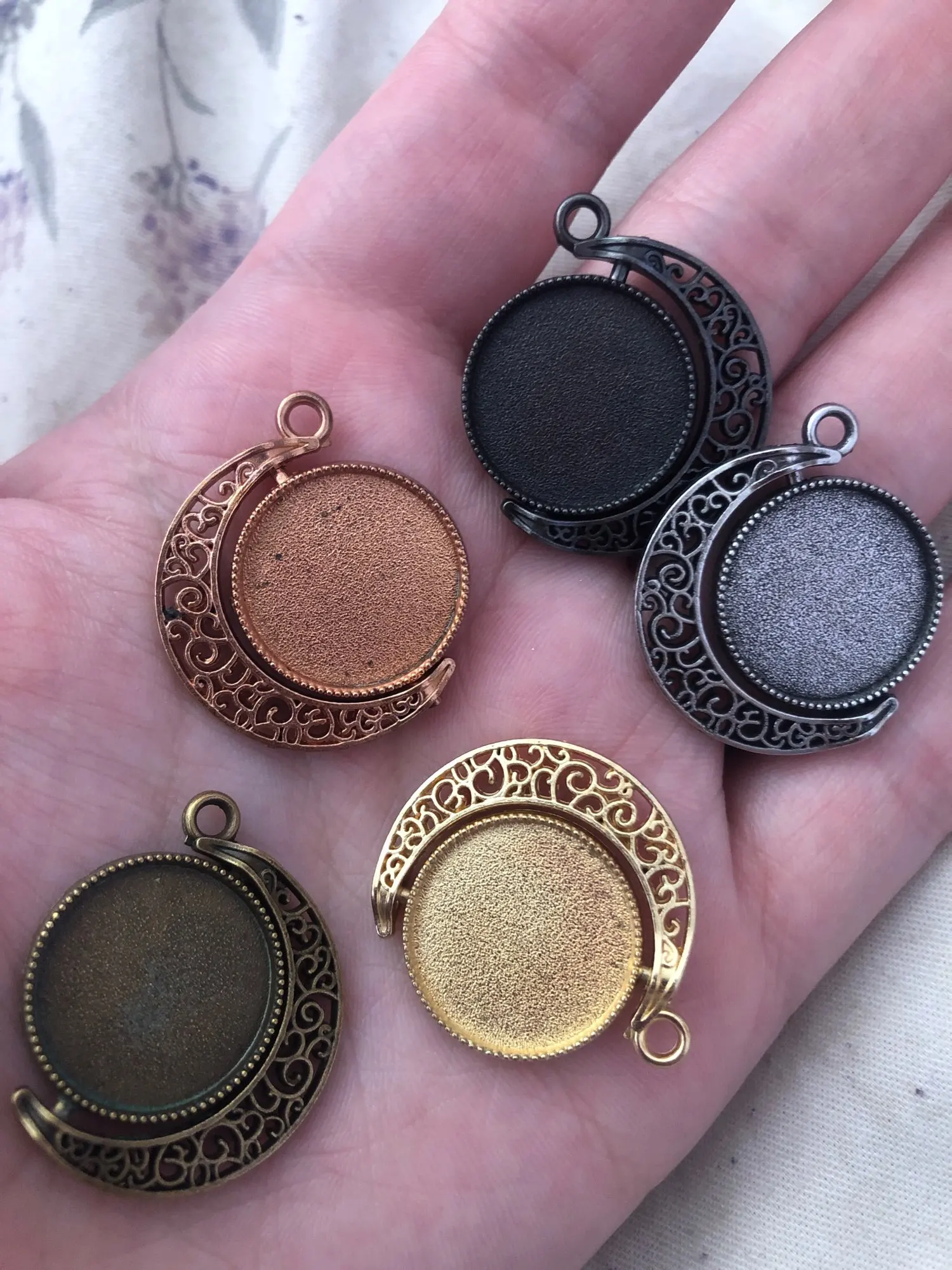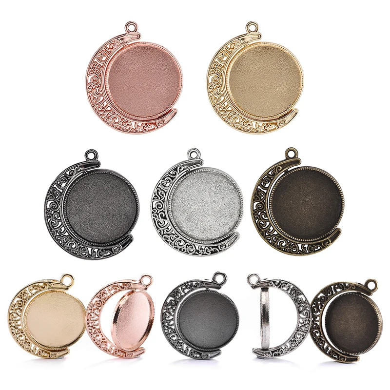 Набор двухсторонних подвесок сделай сам для изготовления ювелирных изделий, поднос для Безель-Камея, 1825 мм, с круглой луной, 10 шт.