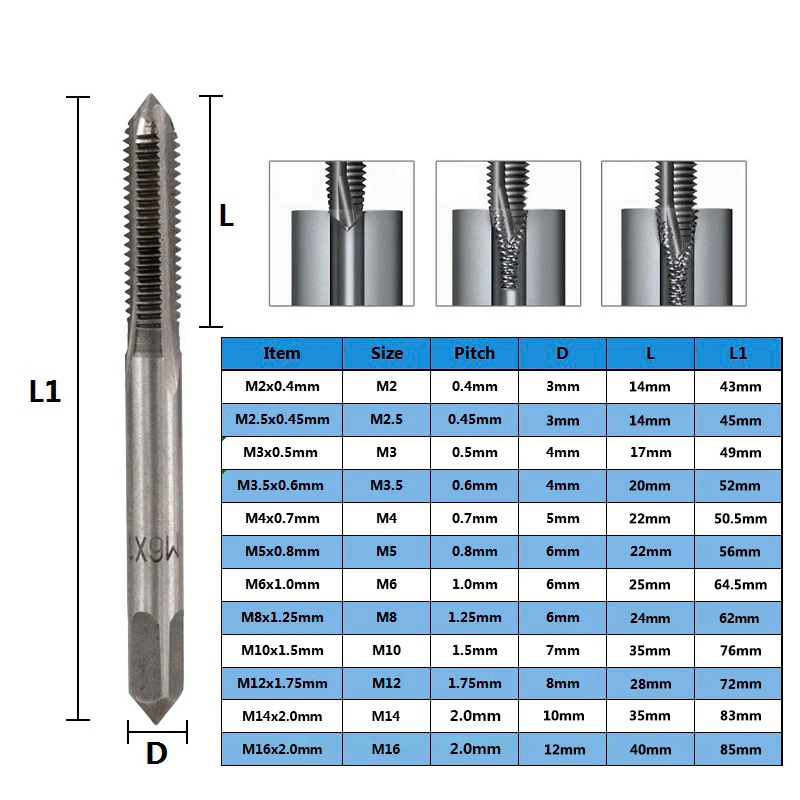 Набор насадок CMCP M3 M4 M5 M6 M8 M10 M12M14M16, набор из 2 винт из быстрорежущей стали насадок с метрической резьбой, прямая пробка для флейты, ручные инструменты