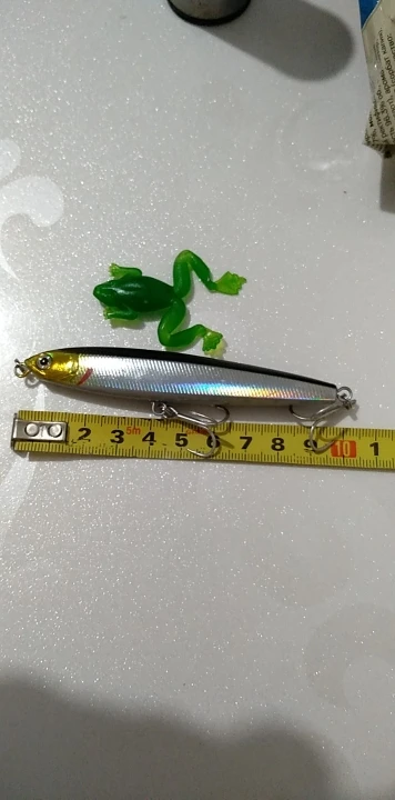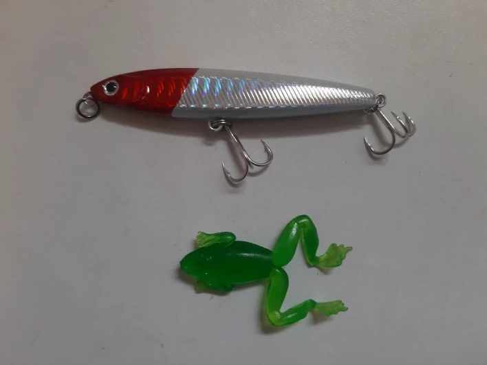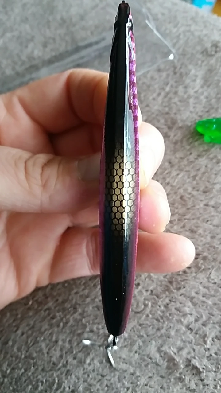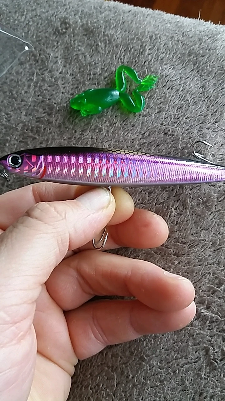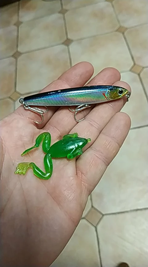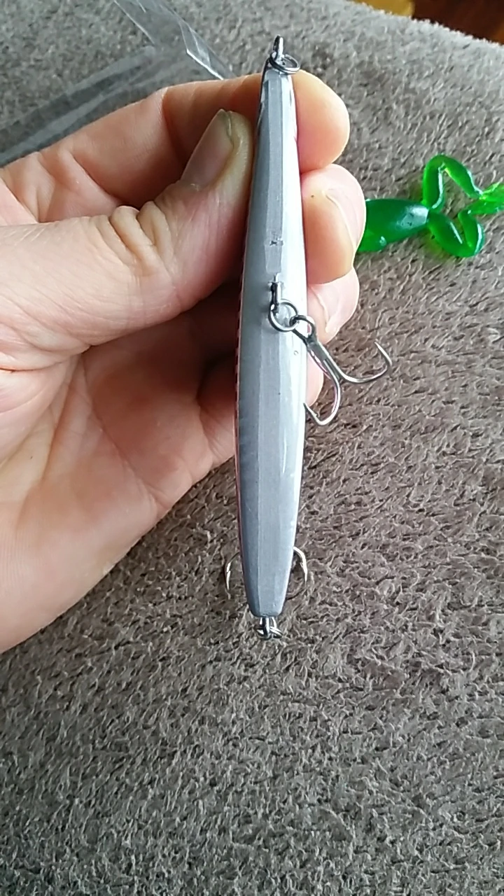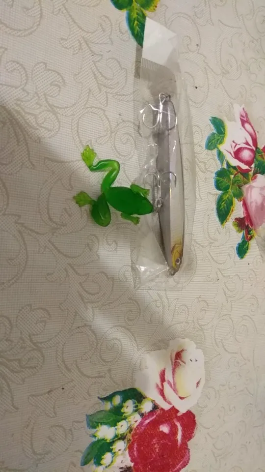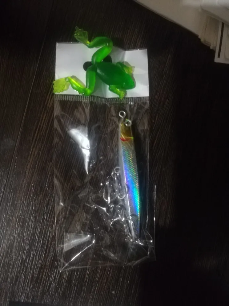 Я думаю, что это будет хорошей приманкой для asp, щуки и некоторых видов соленой воды. Вы можете заполнить отверстия вокруг крюковых колец с помощью смолы или клея. Продавец упаковал маленький подарок, маленькая резиновая лягушка. Крючки действительно хорошие.