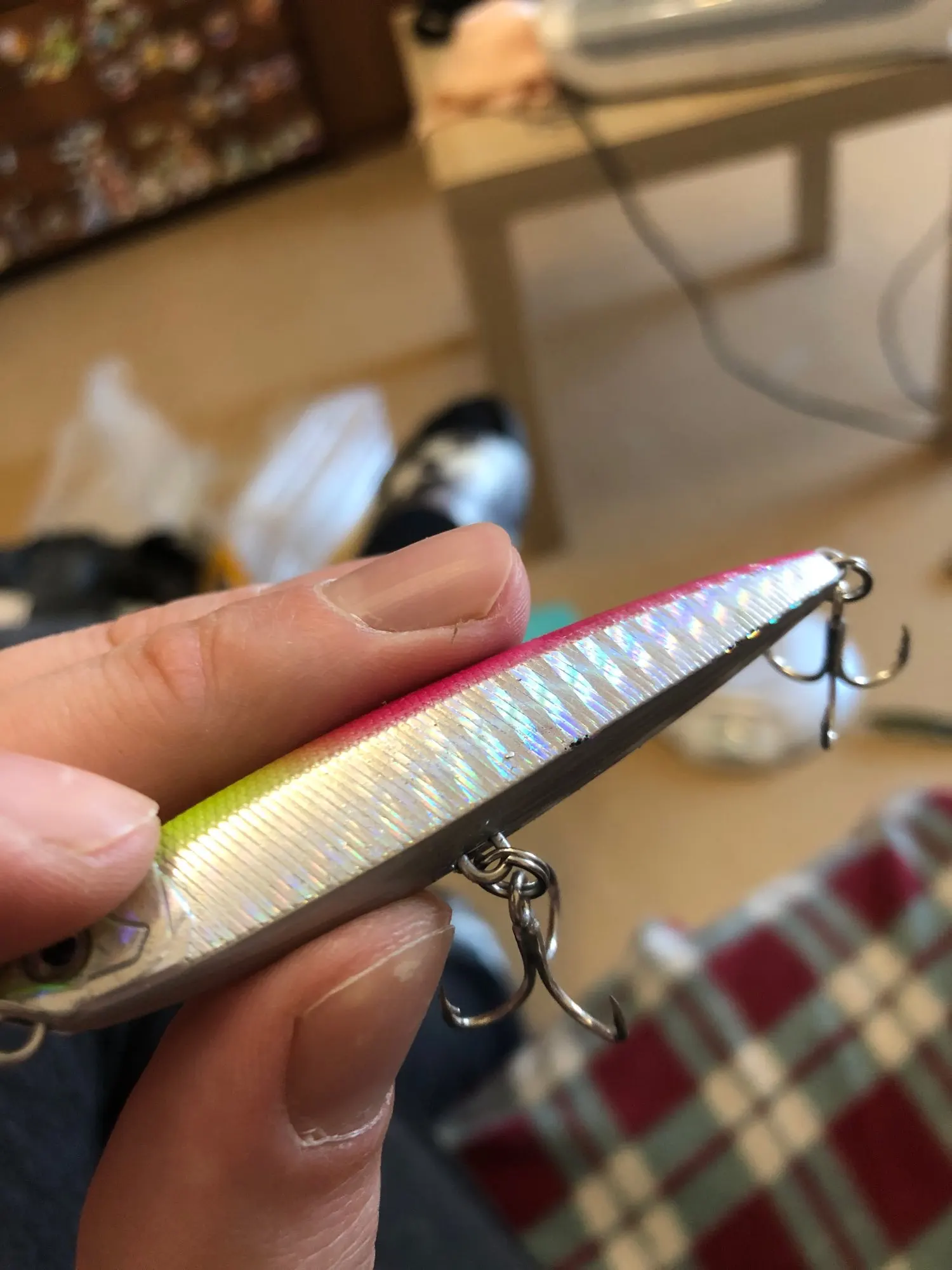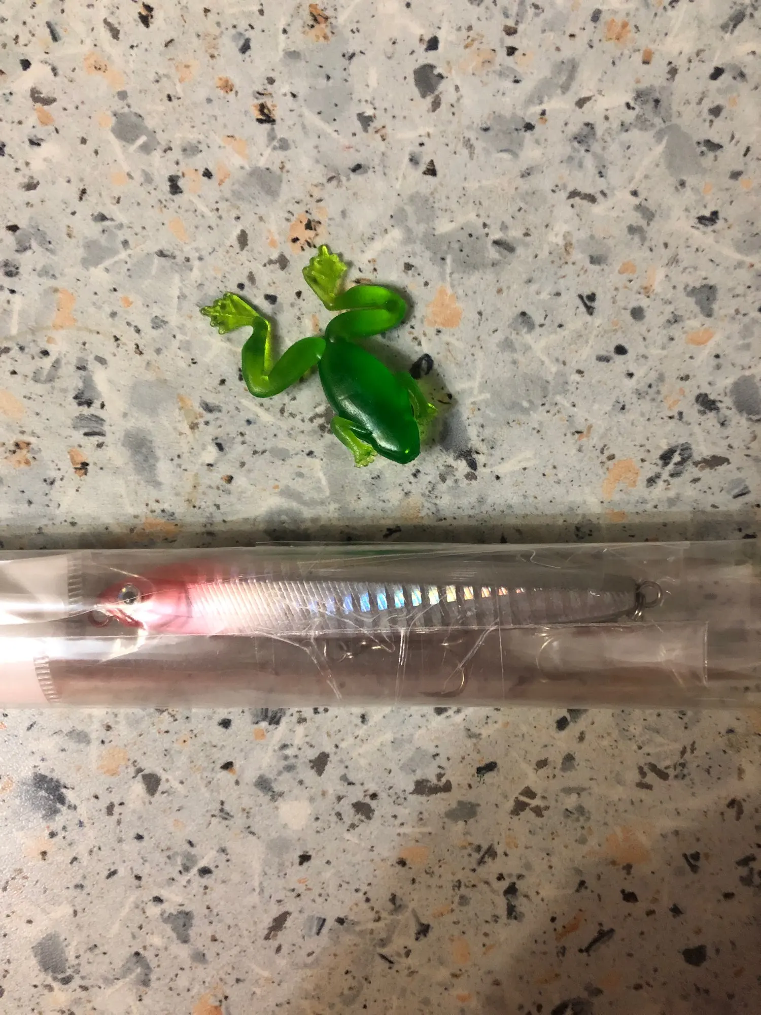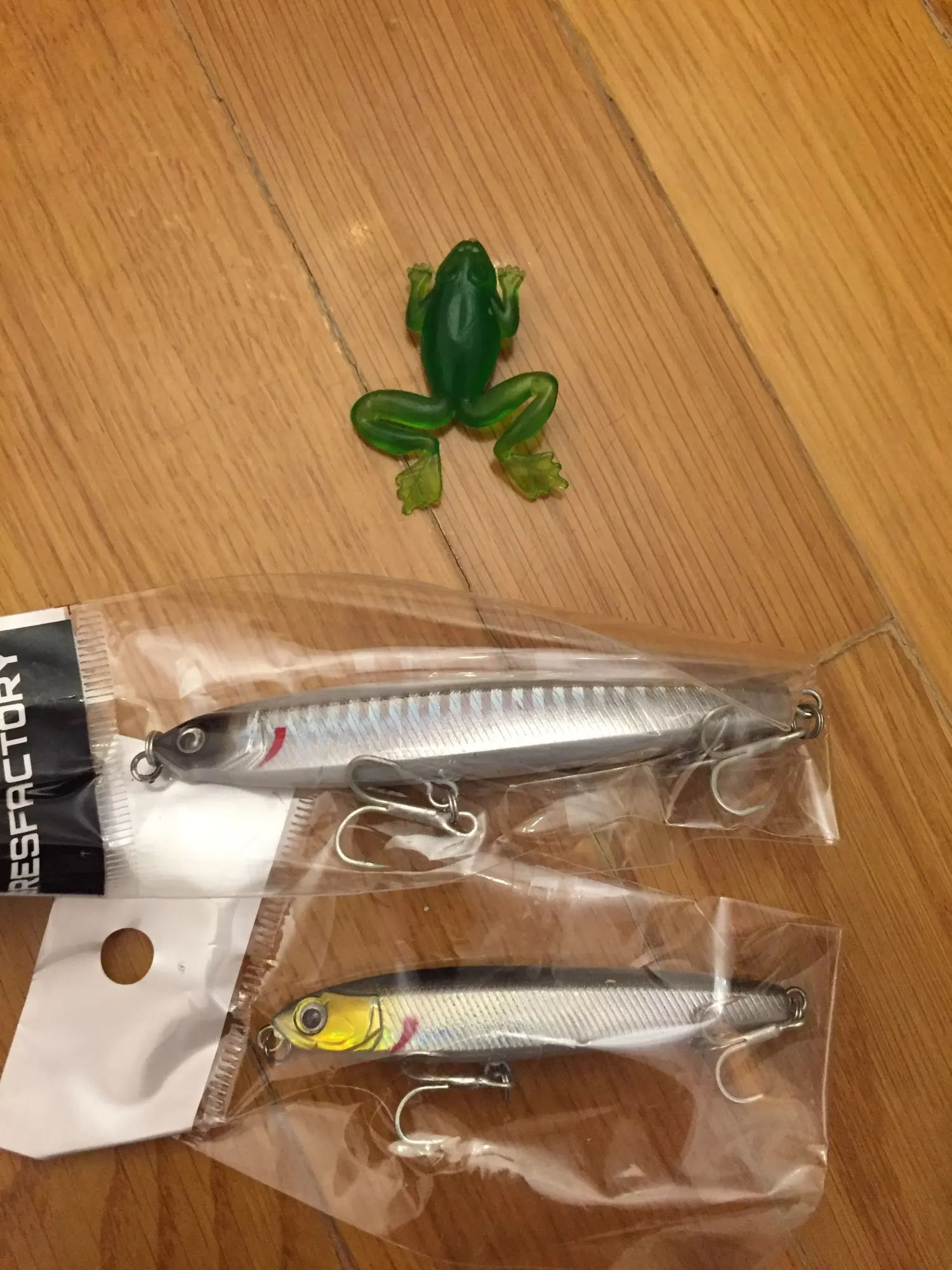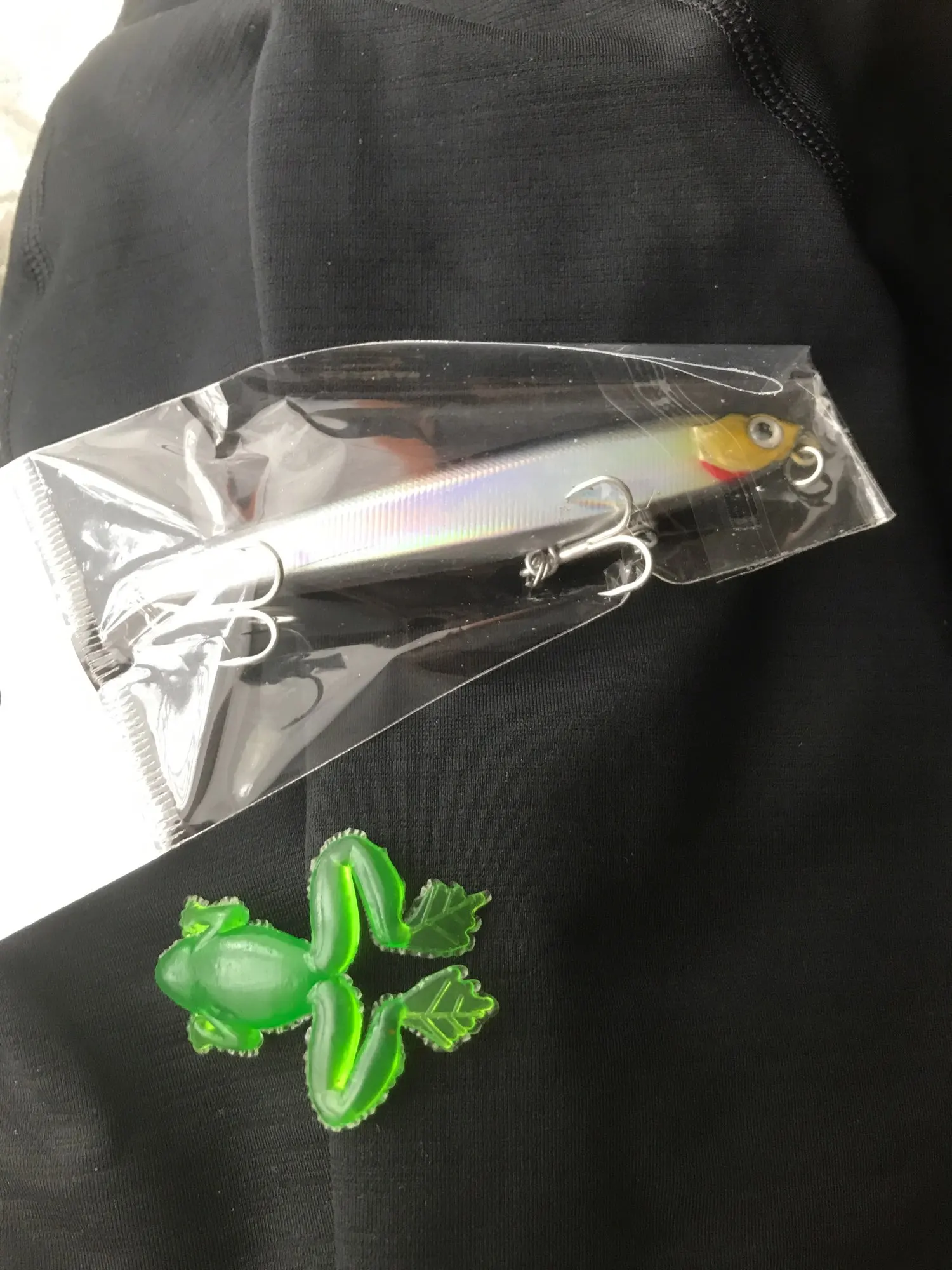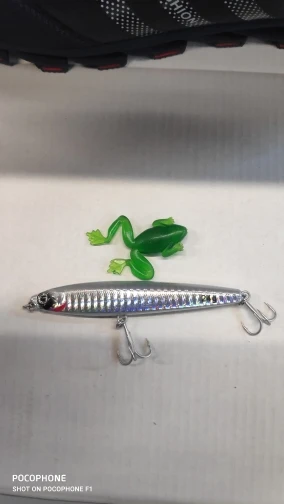 Я думаю, что это будет хорошей приманкой для asp, щуки и некоторых видов соленой воды. Вы можете заполнить отверстия вокруг крюковых колец с помощью смолы или клея. Продавец упаковал маленький подарок, маленькая резиновая лягушка. Крючки действительно хорошие.