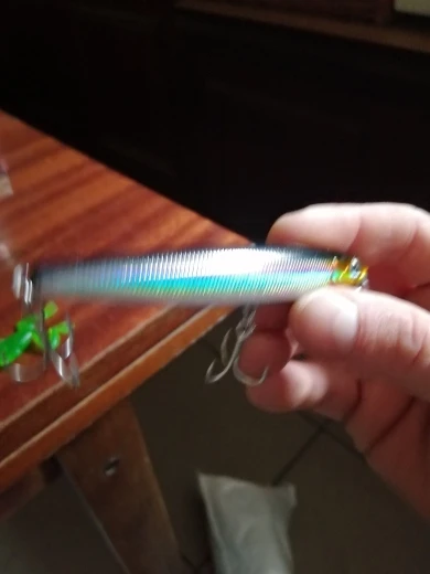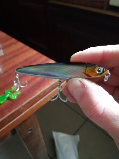 товар пришёл быстро, был упакован в один пакет с другими заказами. на вид изготовлен хорошо, окраска ровная, крючки острые, прочные. я воблером доволен, разлавливать буду по сезону