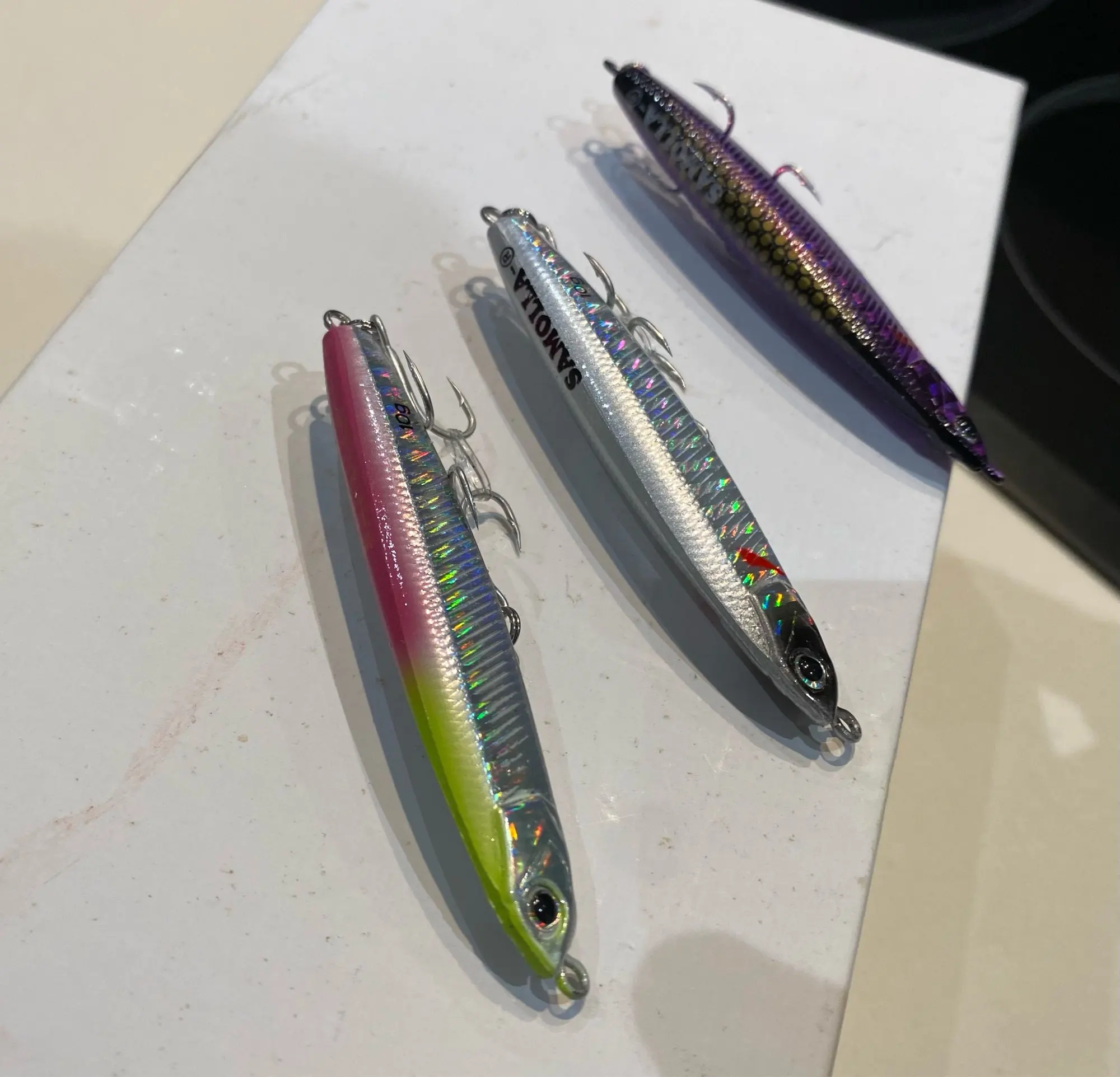 Быстрая доставка (объединенка) Еще не использовал. Что за приманка-даже не знаю. Тяжелая, есть голограмма на теле. Крючки вроде бы нормальные, острые.