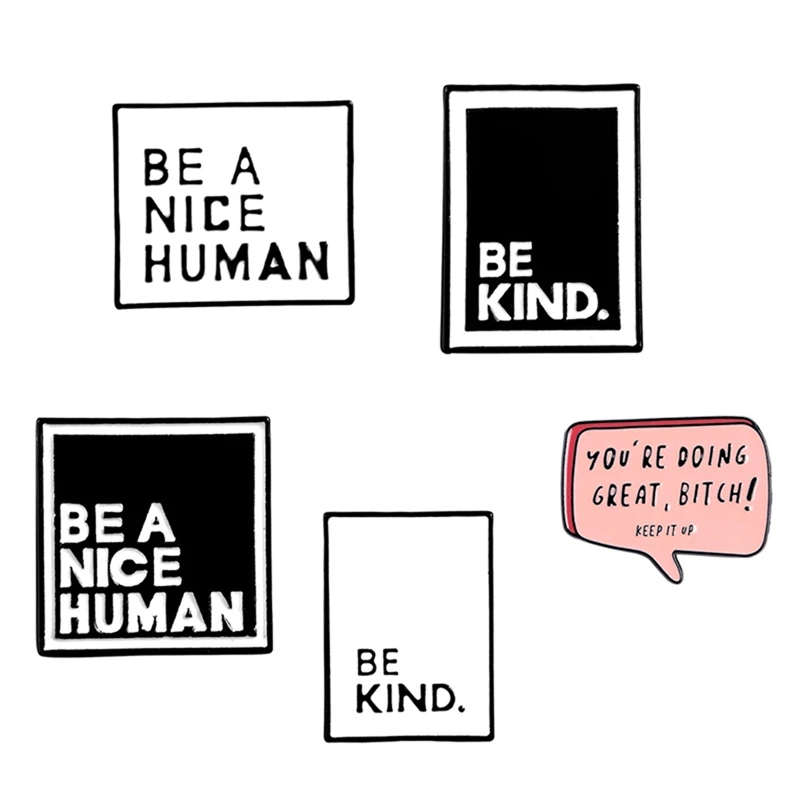 Be A Nice человеческая эмалированная булавка вдохновляющая Be Kind текстовая коробка Цитата слоган прямоугольник минималистский значок Броши Булавки ювелирный подарок