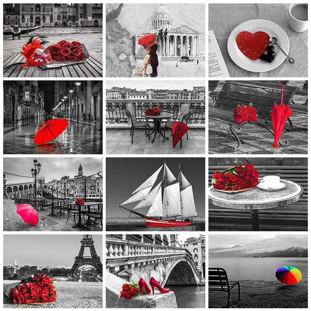 Evershine алмазная вышивка пейзаж 5D DIY Алмазная мозаика розы вышивка крестом Красно-черная серия картина стразы декор для дома