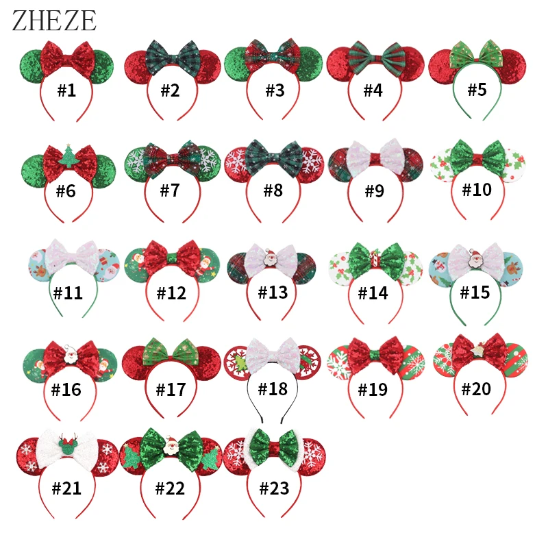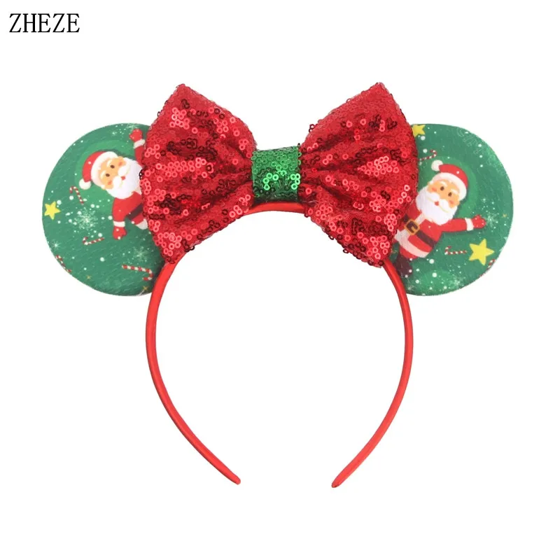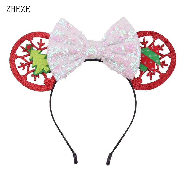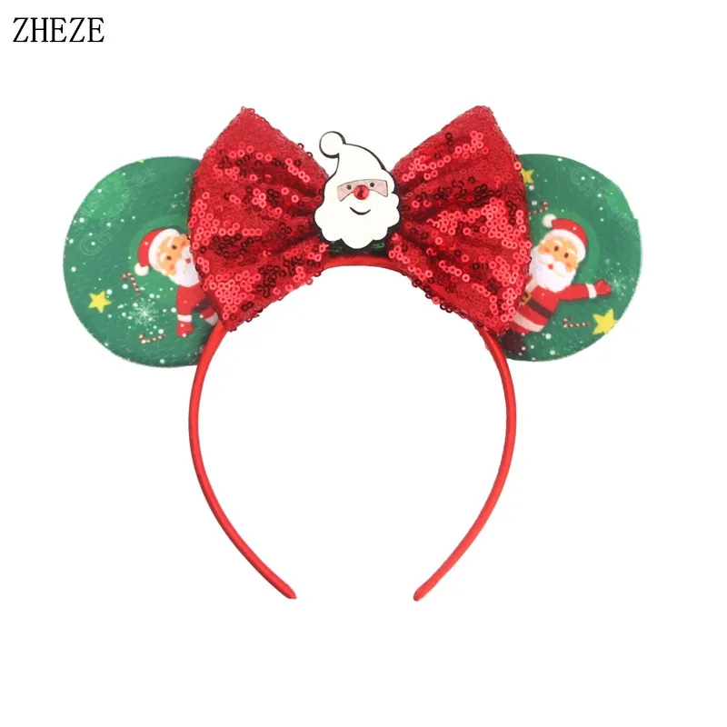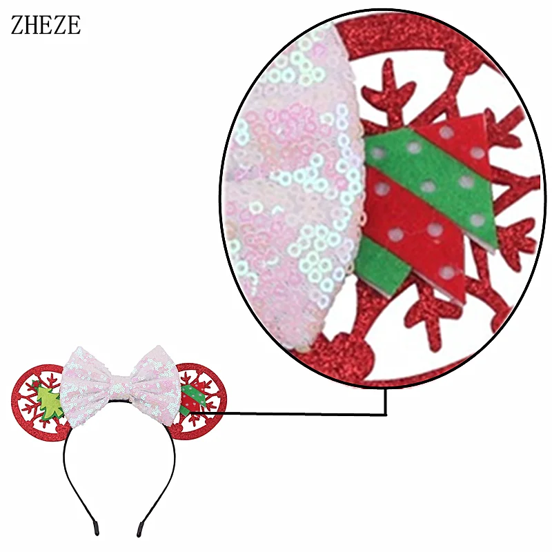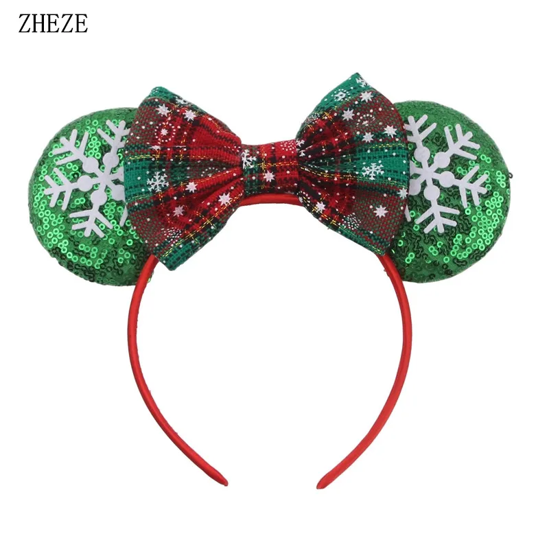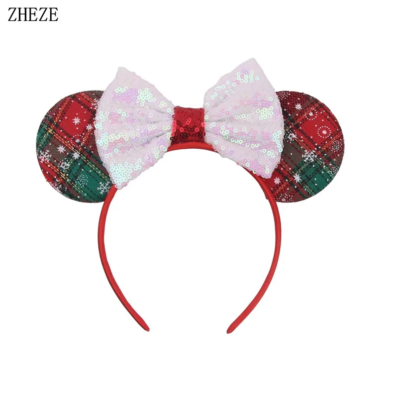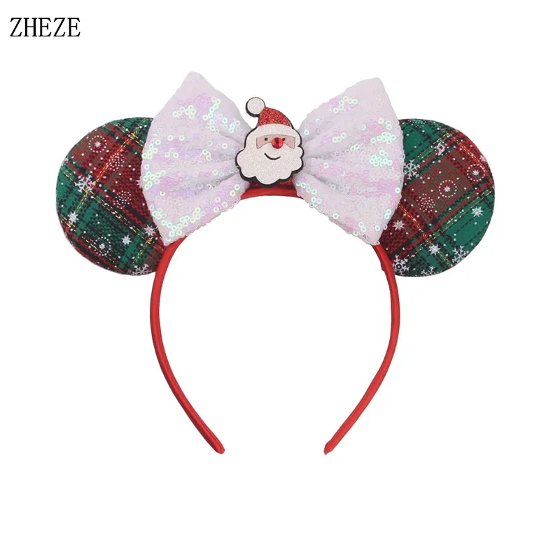 Новые поступления Фестиваль Сделай Сам блеск уши мыши головная повязка Рождество плед лук оголовье для девочек женские вечерние аксессуары для волос