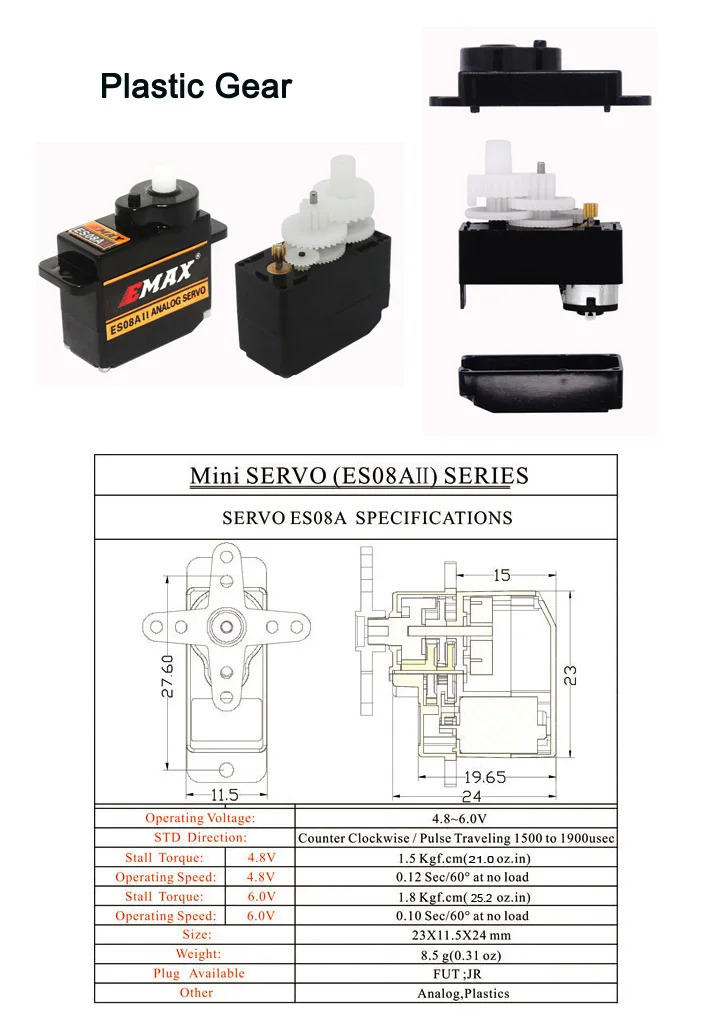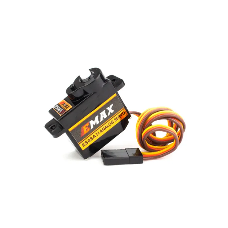 Цифровой сервопривод EMAX ES08A II легкий и идеально подходит для радиоуправляемого самолета. С большим крутящим моментом и большой скоростью, ES08A II-идеальный бюджетный Повседневный сервопривод. Поставляется с монтажным оборудованием и дополнительными сервоприводами.