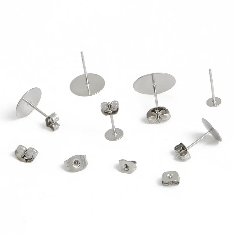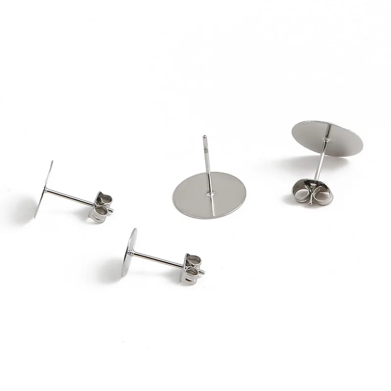Пустая основа для сережек-гвоздиков из нержавеющей стали, 100 шт., подходит для 3, 4, 5, 6, 8 мм, кабошон, настройки, принадлежности для самостоятельного изготовления ювелирных украшений