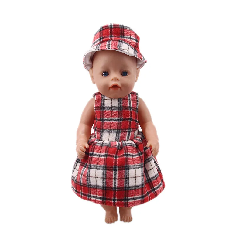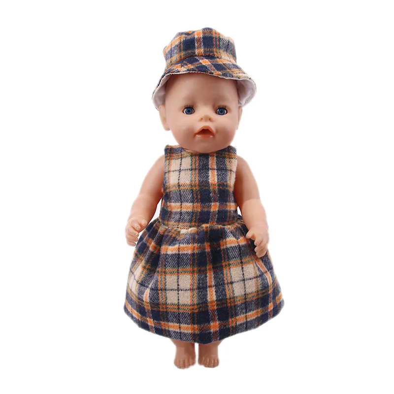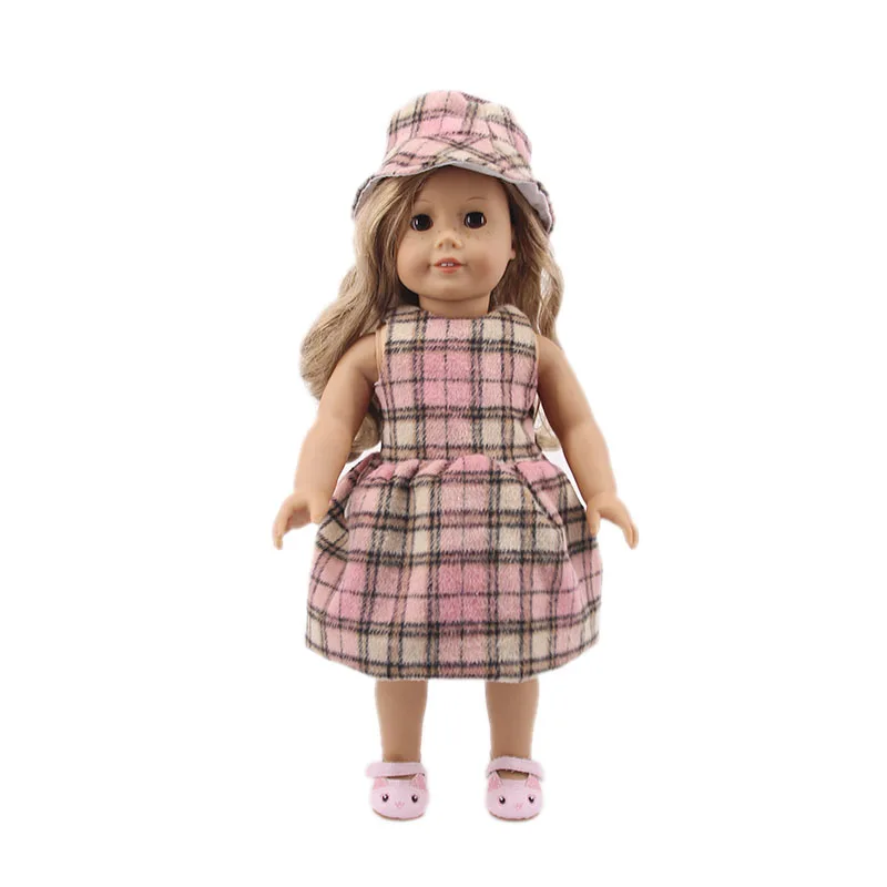 Матовый плед ткань кружевное платье в кукольном стиле для девочек + шляпа для 18 дюймов американская кукла девочиковая игрушка 43 см для ухода за ребенком для мам Одежда для новорожденныхмалышей Аксессуары для нашего поколения Nenuco