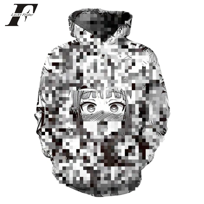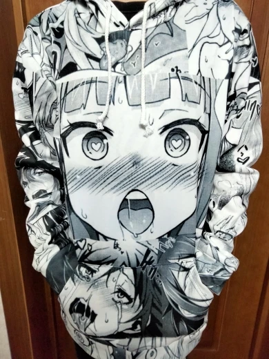 Толстовка мужская Ahegao, с объемным изображением лица, в стиле Харадзюку, большого размера, на молнии, толстовка японская аниме