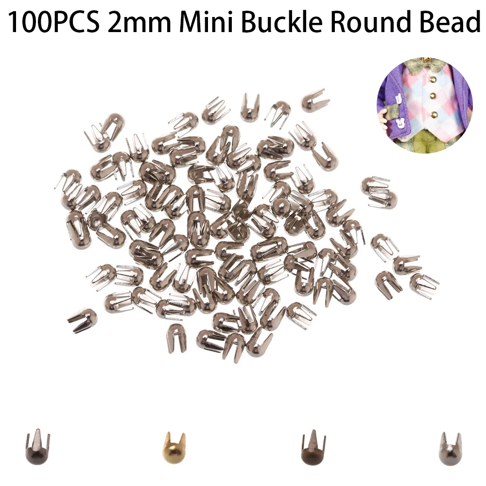 100 шт./упак. 2 мм мини-Пряжка, круглая бусина, молоток, супер маленькие металлические пряжки, сделай сам, кукольная одежда, пряжка, аксессуары для кукол