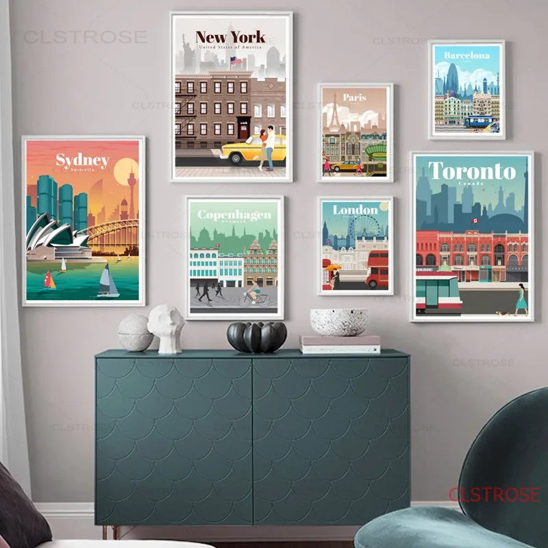 Настенная Картина на холсте Лондон Нью-Йорк Париж Испания винтажные...