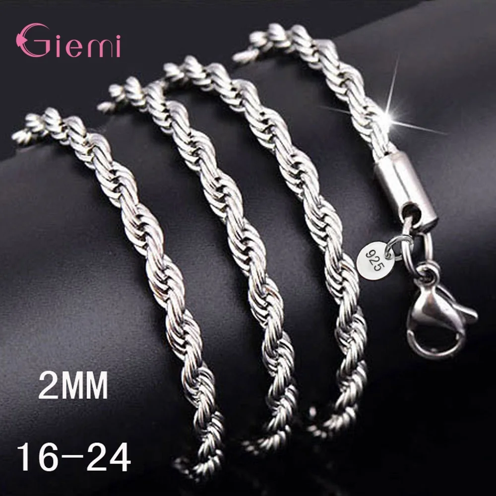 Описание Элегантные женские ожерелья-цепочки из стерлингового серебра 925 пробы, вечерние ювелирные изделия в подарок, толщина 2 мм, Длина 16 18 20 24 26 28 30 дюймов