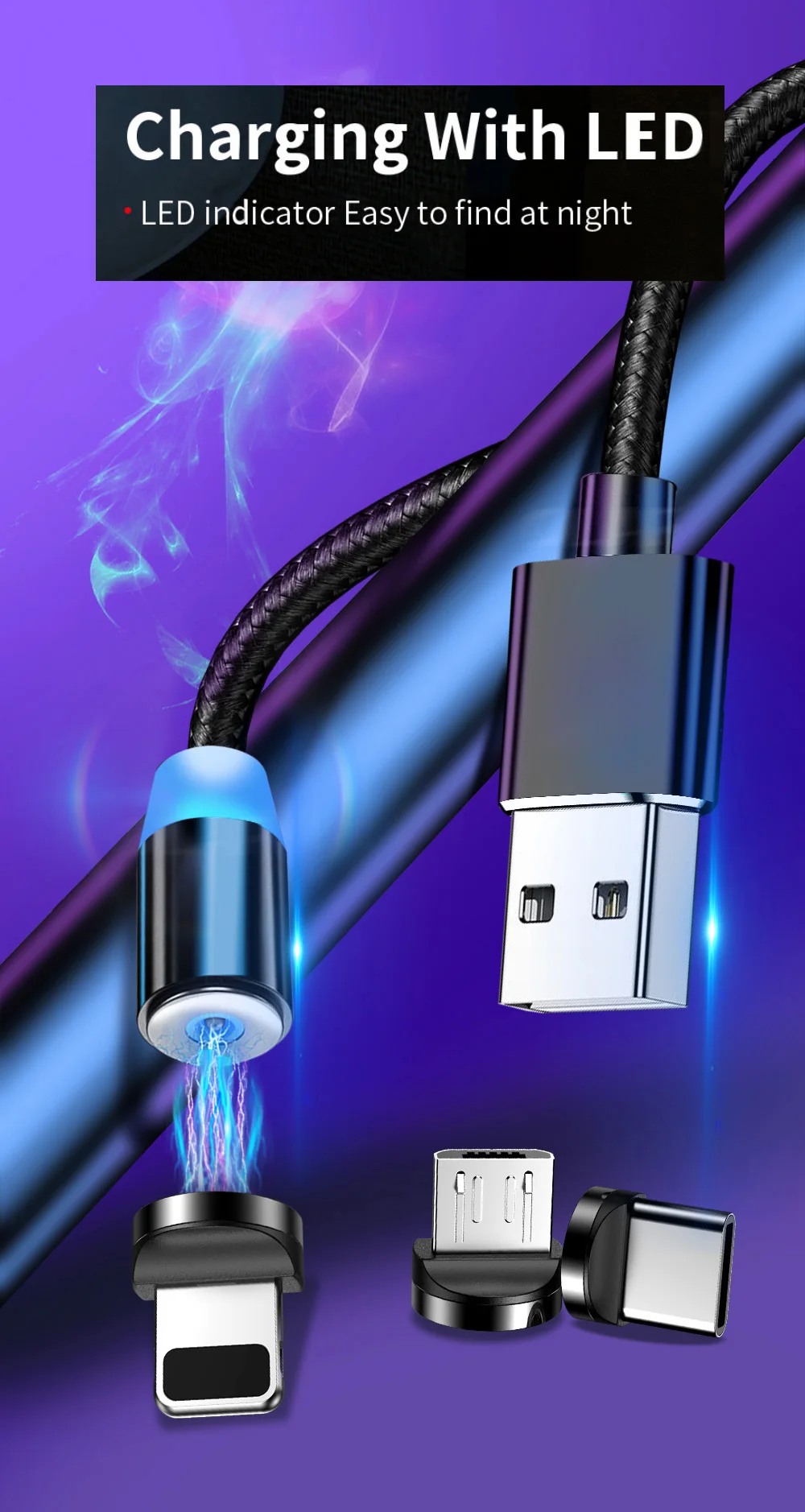 Type 2Magnetic USB Charging Charge Cable Adapter