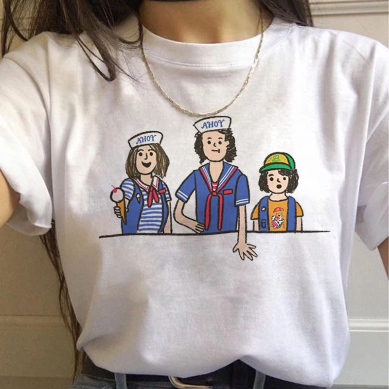 Летнее платье из сериала очень странные 3 Женская Футболка Harajuku Eleven в винтажном стиле; Женская верхняя одежда Ullzang футболка со смешным рисунком Узкие вставки футболки для девочек